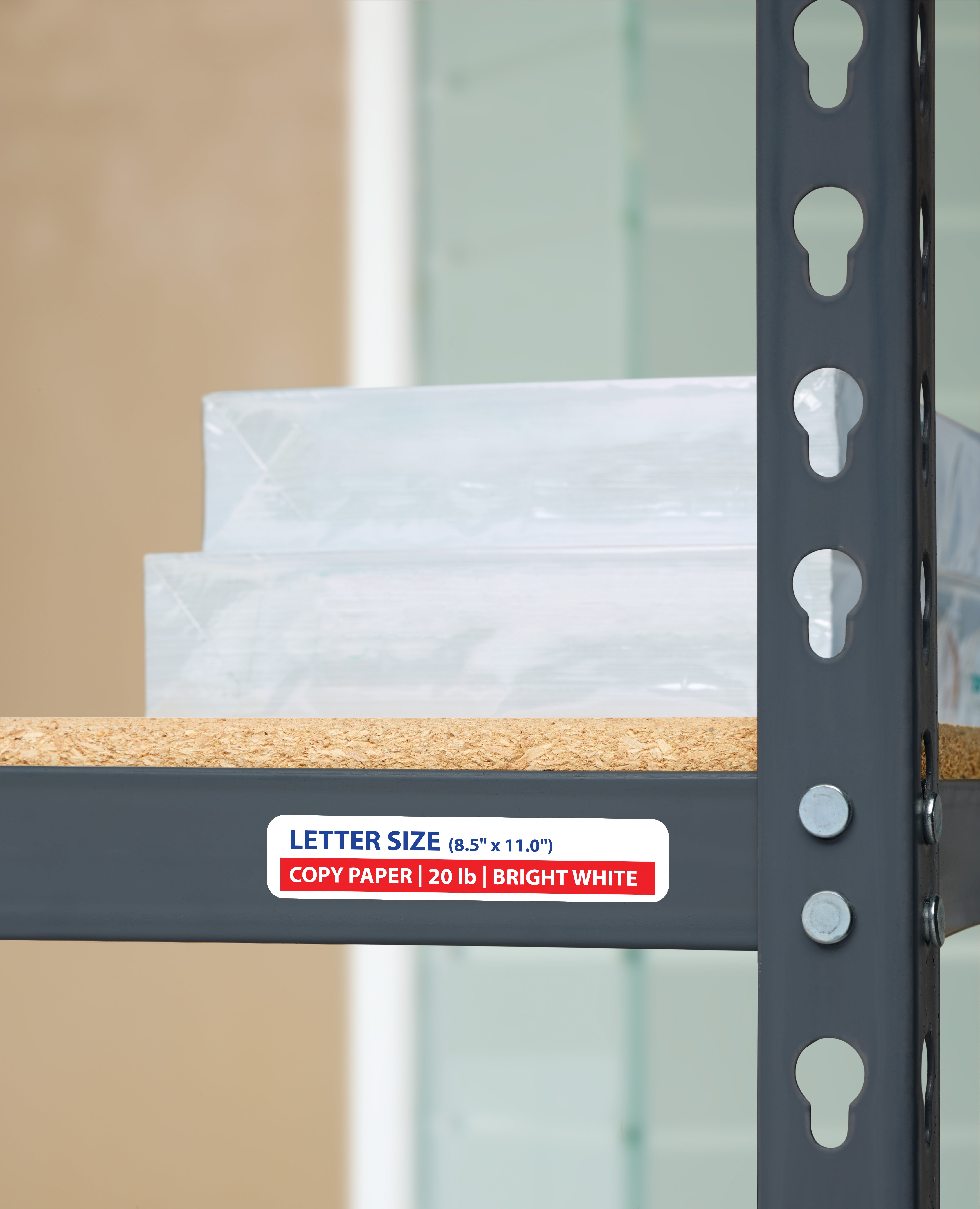 - Multiuse labels make it convenient to organize shelves and containers, and to identify equipment, electronics and other assets and property