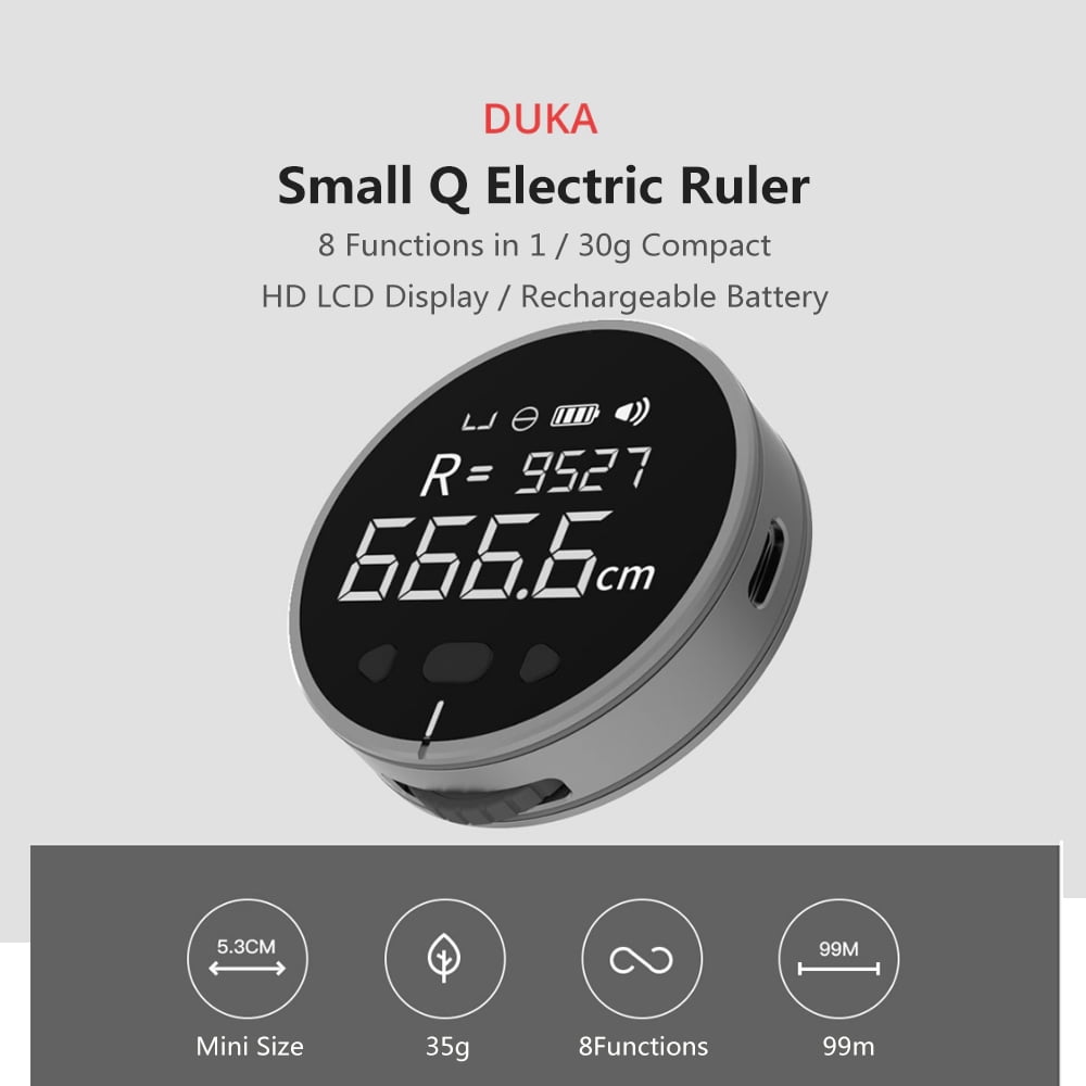 – Duka Small Q can measure straight and curved surfaces, soft and irregular objects just about anything. Its use is multipurpose, whether it is a household, workshop and find application in various craftsmen, or even tailors.