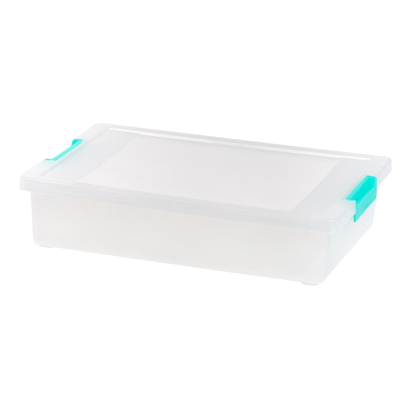 IRIS 6 Quart Storage-Bins with Lids, Clear/Seafoam Blue, Set of 4