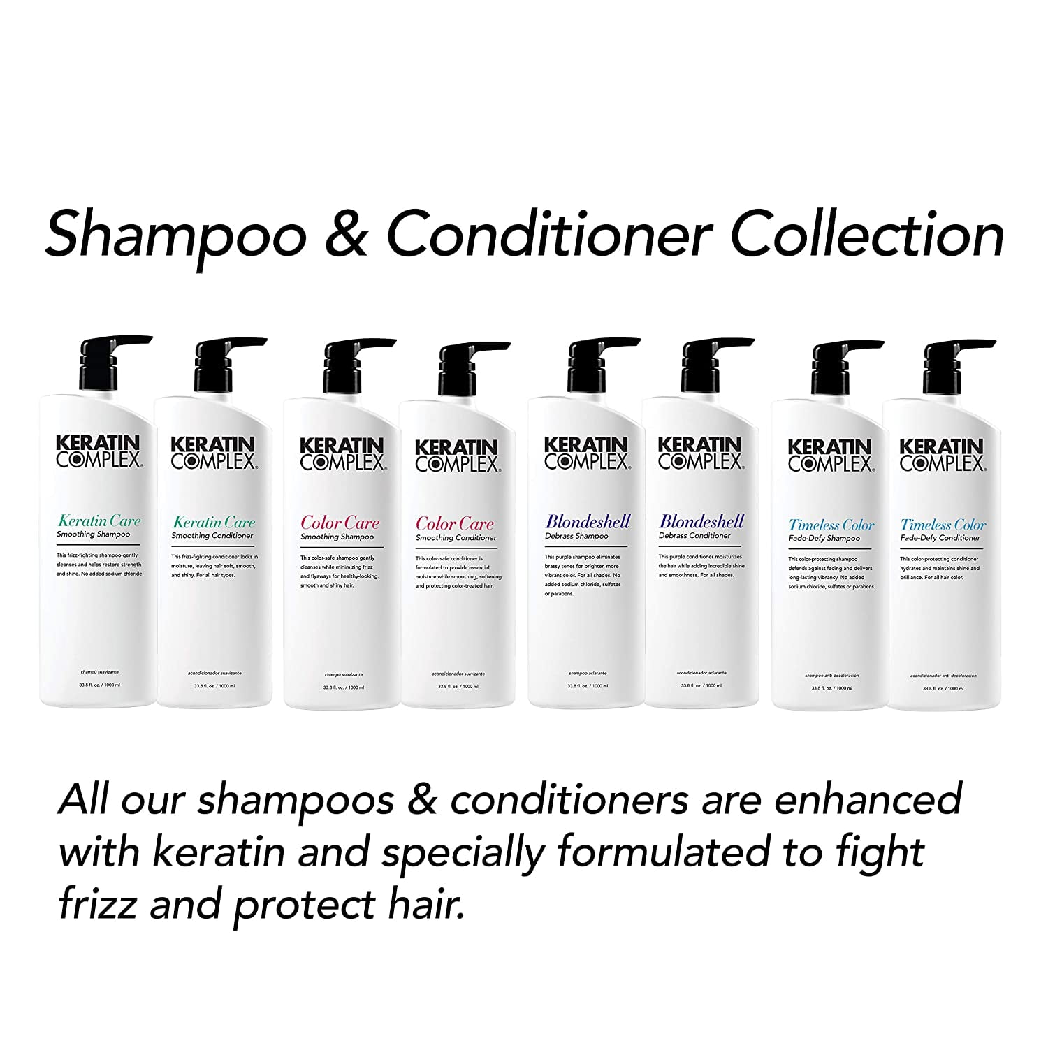 - Keratin Complex Color Care Smoothing Shampoo: This color-safe, the keratin-enhanced shampoo gently cleanses the hair while minimizing frizz and flyaways. Leaves the hair healthier-looking, smooth and shiny.