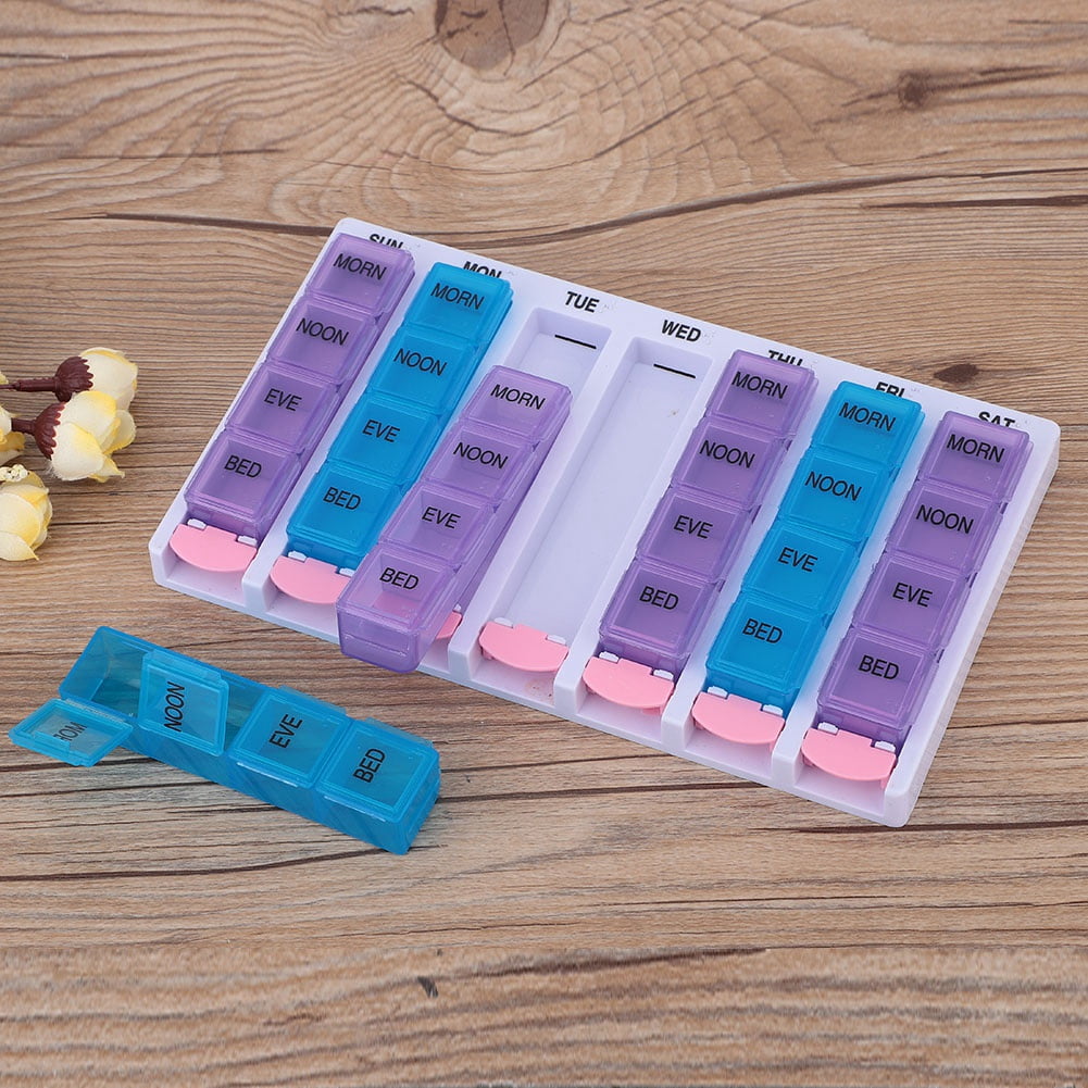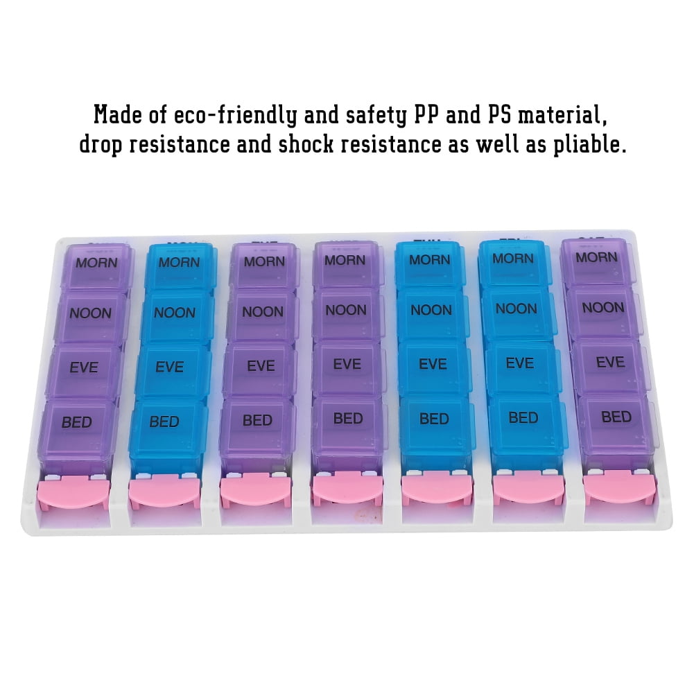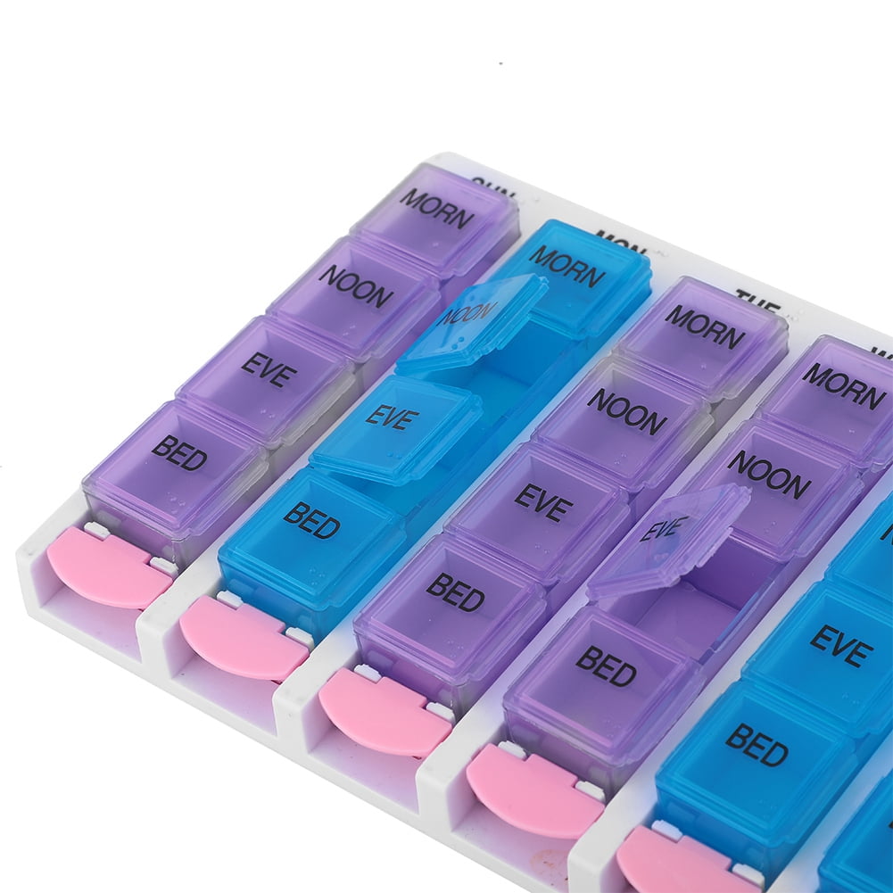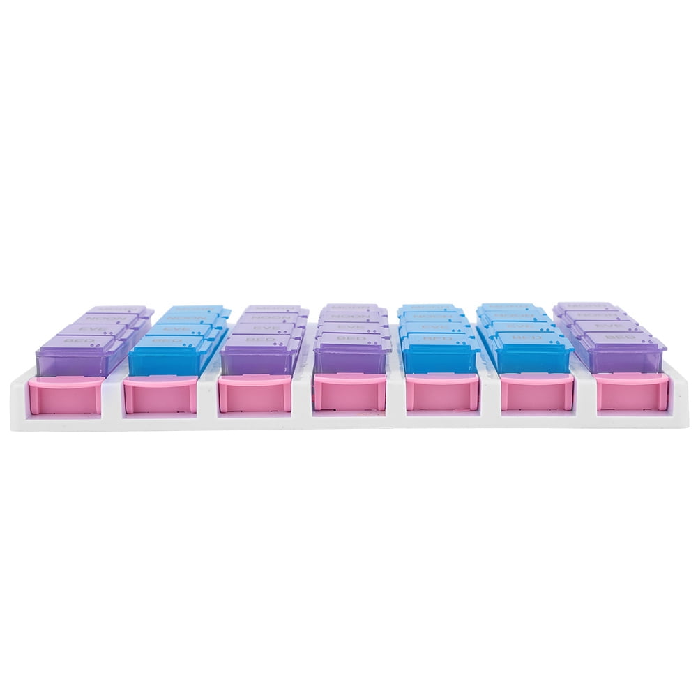 LHCER 7 Days 4 Times a Day 28 Compartments Pill Box Medicine Organizer with Push Button (Blue Purple), Medicine Organizer, Pill Box with Push Button