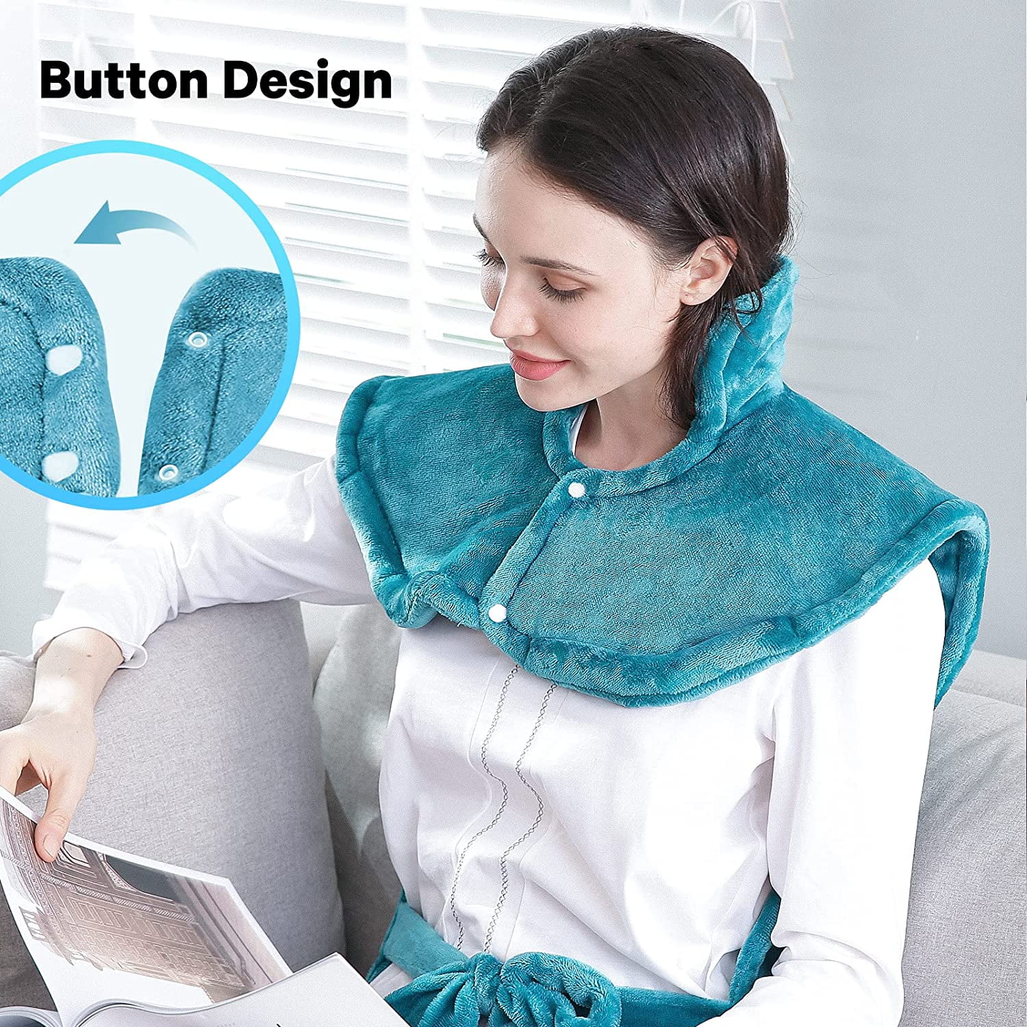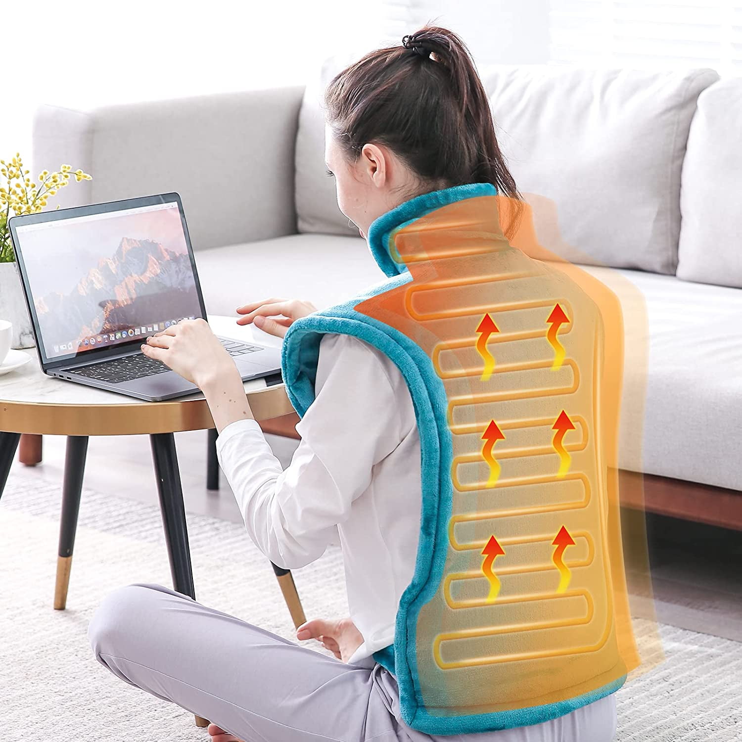 - Extra large: The heating pad measures 24"x33", offering more comprehensive care along the neck, shoulders, and back.
