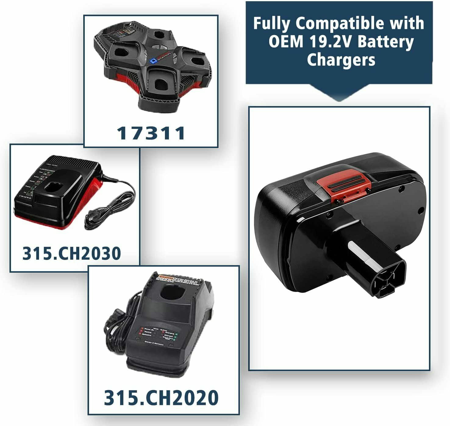 Replace OEM P/N(Not a full list, more details, please email us): For Craftsman C3 Diehard 19.2V Drills 10126, 11541, 11543, 11570, 11576, 11578, 11580, 11586, 17338, 17339, CRS1000