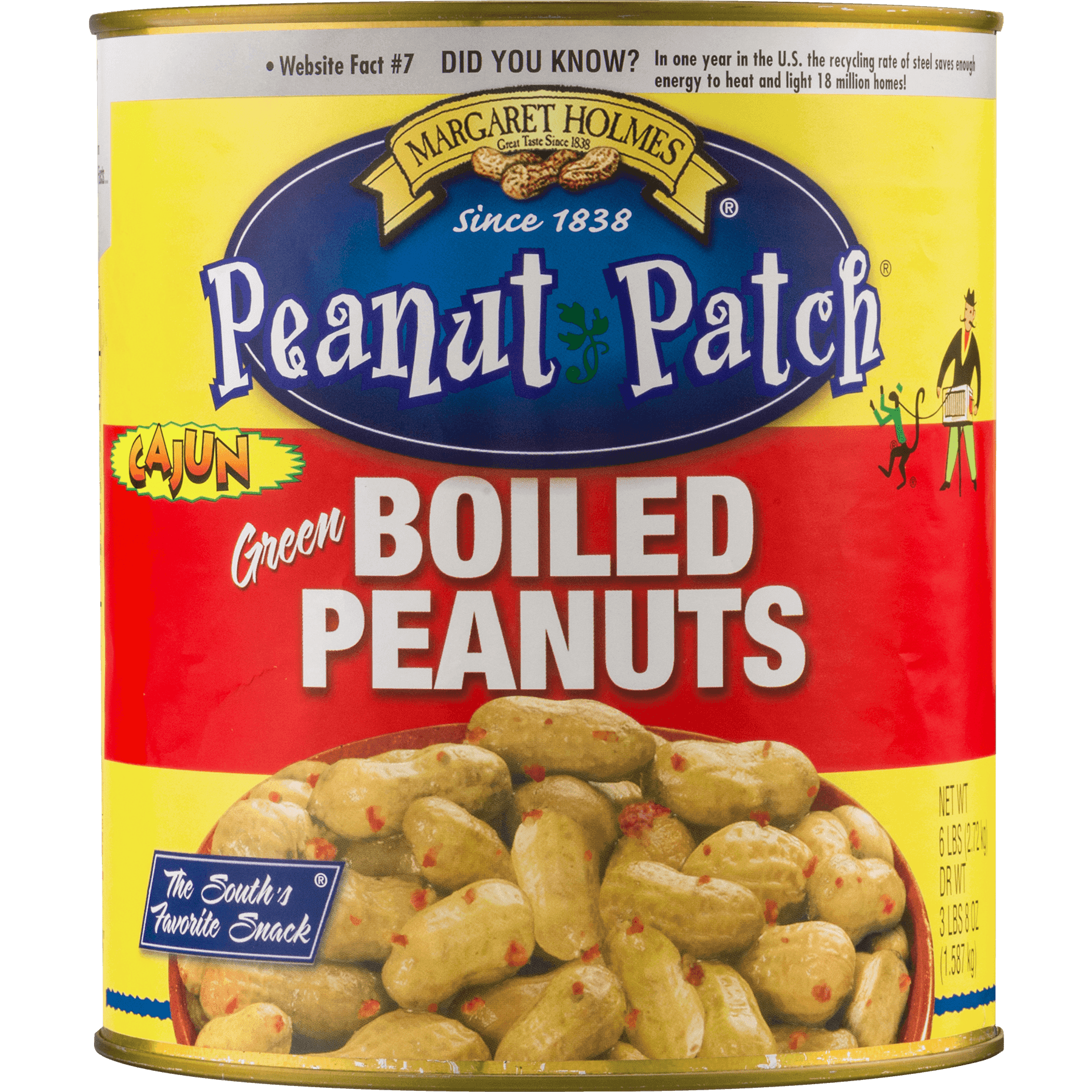Peanut Patch® Green Boiled Peanuts Cajun. Great taste since 1838. The south’s favorite snack. Just like our Green Boiled Peanuts, these peanuts are harvested straight from the ground and boiled in the can but this time, we use our Cajun seasoning recipe that will likely melt your face! Of course, they are harvested and sealed fresh, all in the same day! The longer they soak in that Cajun heat in the brine, the more likely you will have tears in your eyes while eating them (but you won’t be able to stop). You have been warned!