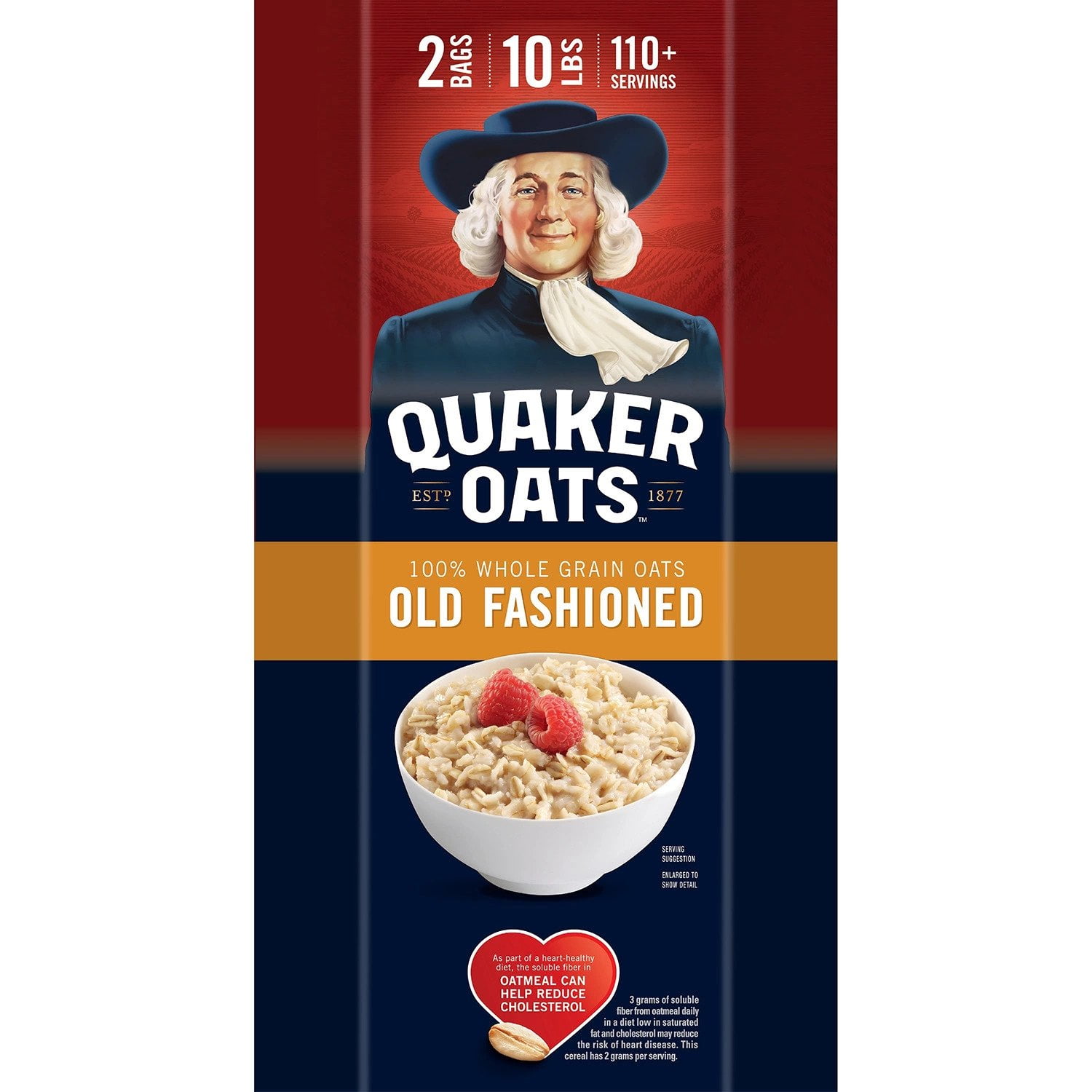 Product of Quaker Old Fashioned Oats 5 lb. 2 Ct. A hearty hot bowl of Quaker Old Fashioned Oats goes great with everything try topping with fresh or dried fruits or crunchy nuts. Even better, the goodness doesn’t stop with the taste Quaker Oats is 100% whole grains which may help reduce the risk of heart disease. Three grams of soluble fiber from oatmeal daily in a diet low in saturated fat and cholesterol may reduce this risk of heart disease. This cereal has two grams per serving. old Fashioned Oats, Quaker old Fashioned Oats, oatmeal old Fashioned Oats, organic Fashioned Oats