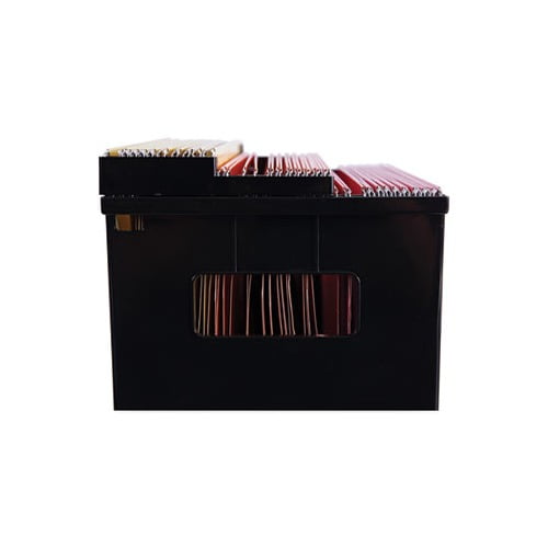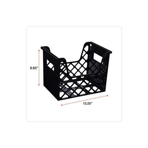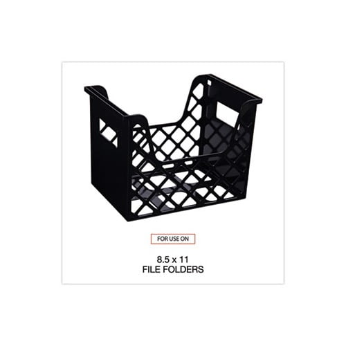 Conveniently store, view and retrieve files. Step-up inserts allow you to stack in tiers. Constructed of sturdy plastic. Hanging File Folder Rack Type: Desktop Rack For File Size: Letter Number of Sections: 1 Maximum Length/Capacity: 8.5". Green : Contains a minimum of 30% post-consumer recycled content, 100% total recycled content.