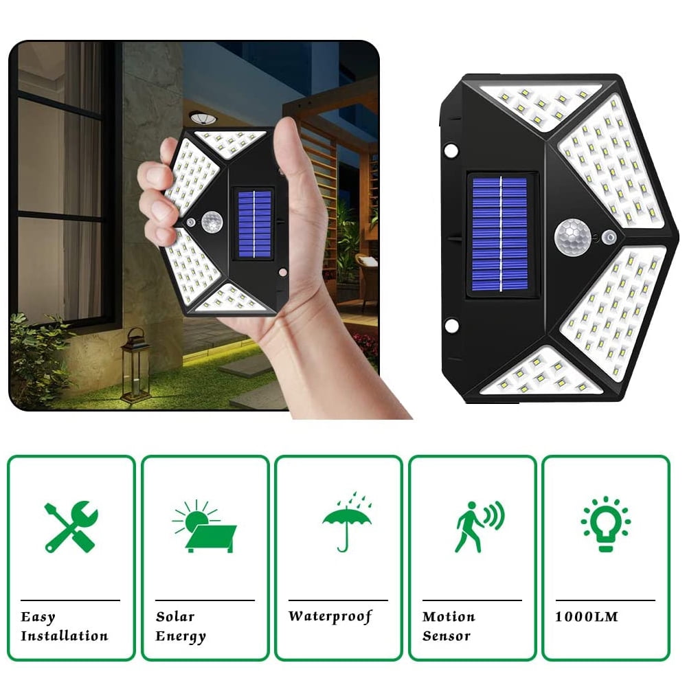 Solar Lights Motion Sensor 100 Led Smart Brightness Control Waterproof IP65 Wireless Lights for Garden Fence Patio Garage Front Door 2 Pack