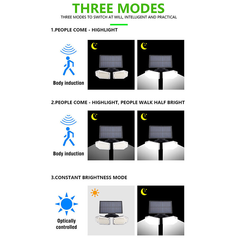Solar Lights Outdoor, 2 Head 78 LED Security Solar Night Light Rotatable Motion Sensor Remote Control & 3 Lighting Modes for Farm Porch Garden Patio Yard