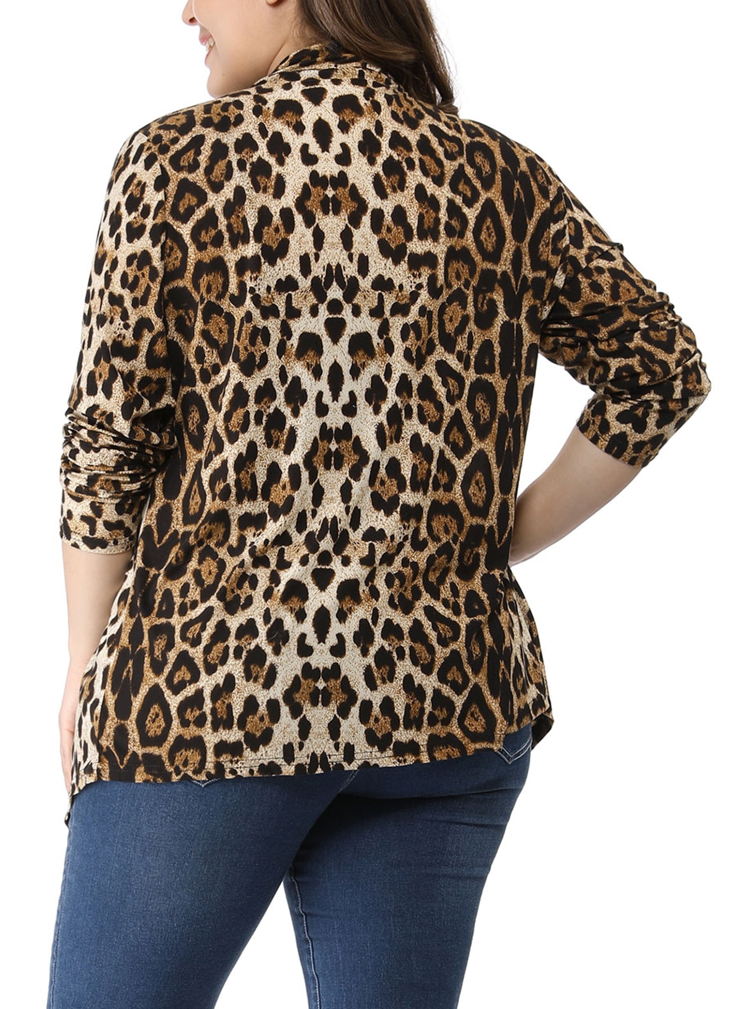 Unique Bargains Women’s Plus Open Front Leopard Print Cardigan