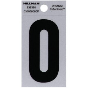 Hillman Group 839398 2 in. Black & Silver Reflective Mylar Square Cut Self Adhesive Number – 0 – 6 Piece