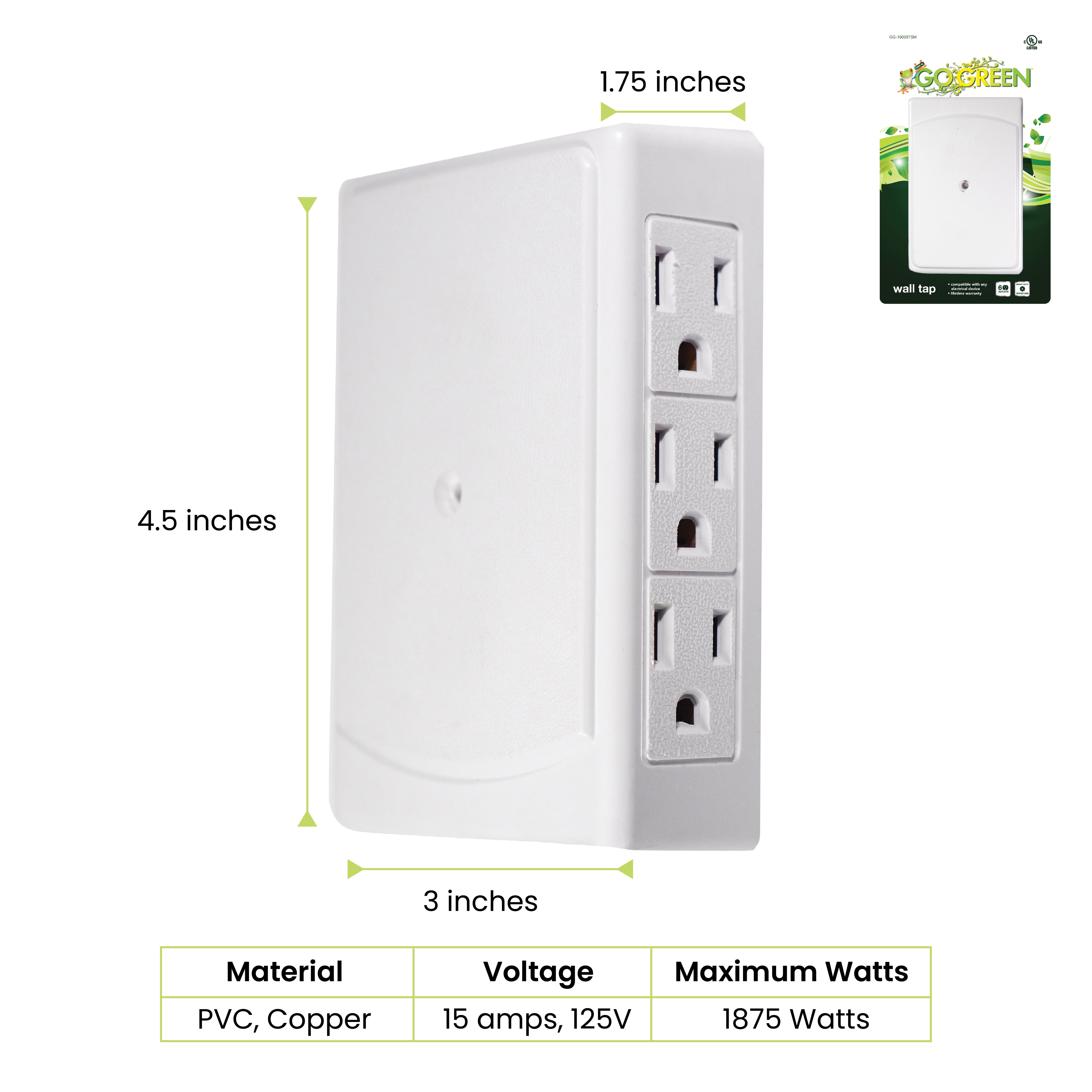 Satco Quick Connect Flat Plug Non Polarized 18/2-SPT-2 White