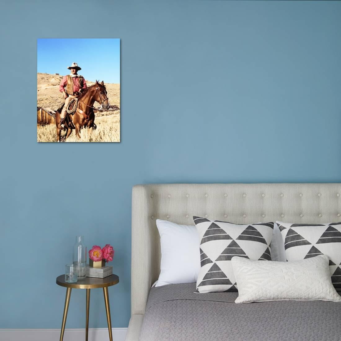 John Wayne on horse in mountains Print Wall Art By Movie Star News