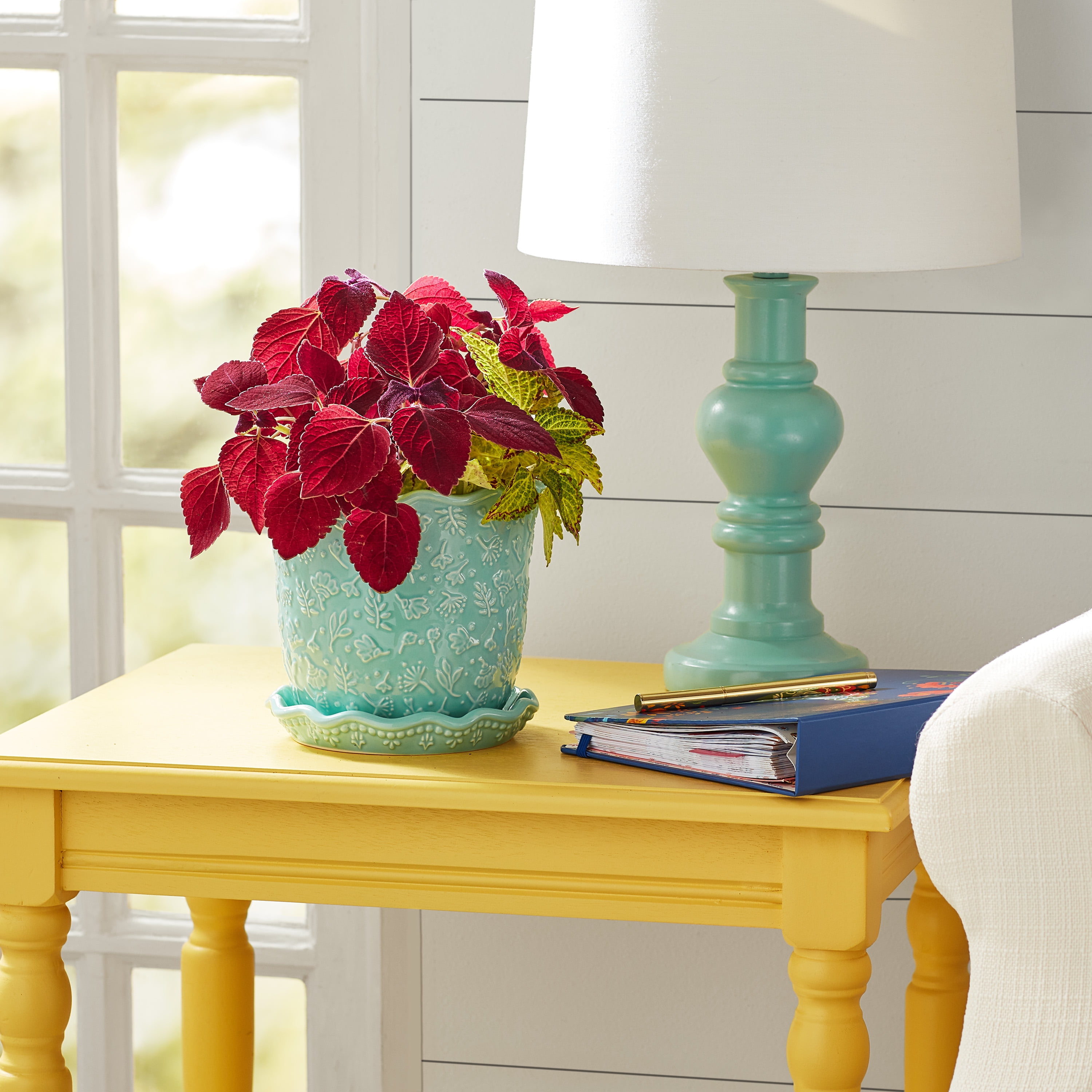 The Pioneer Woman Embossed Daisy Teal Planter 6 inch, Stoneware