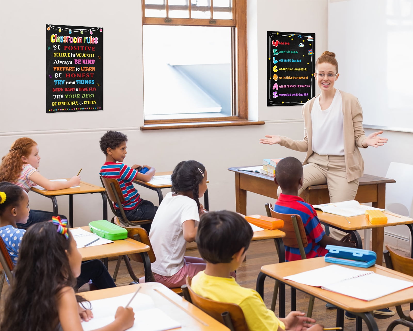 WaaHome Welcome Classroom Posters Classroom Rules Poster 12’x18′ Inspirational Posters for Back to School Classrooms Decorations Teacher Supplies School Posters