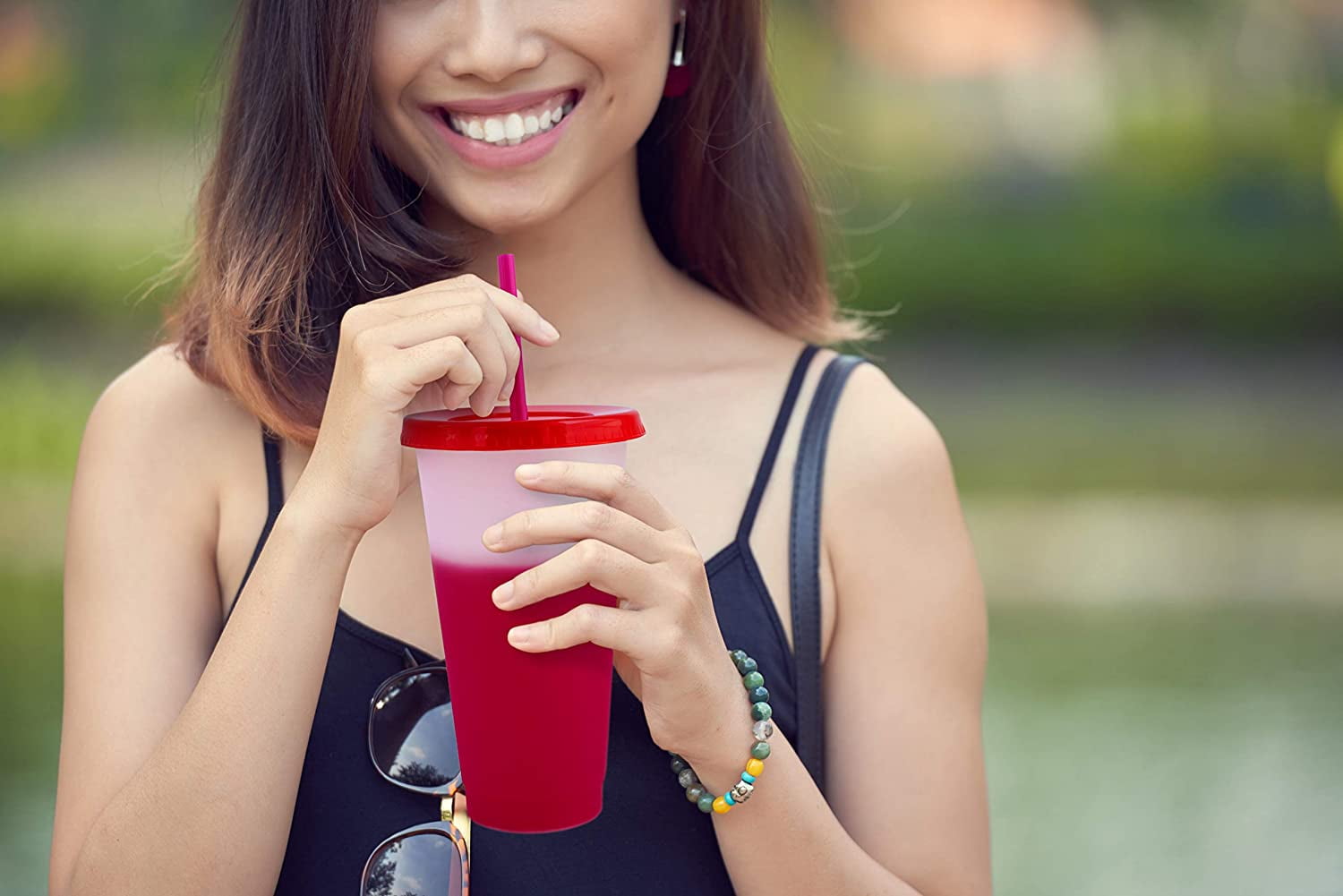 Color Changing Cups Tumblers With Lids And Straws Plastic Bulk Christmas Iced Strata Cups 24 Oz Personalized Aladdin Drinking Coffee Manna Reusable Cups(4PCS)