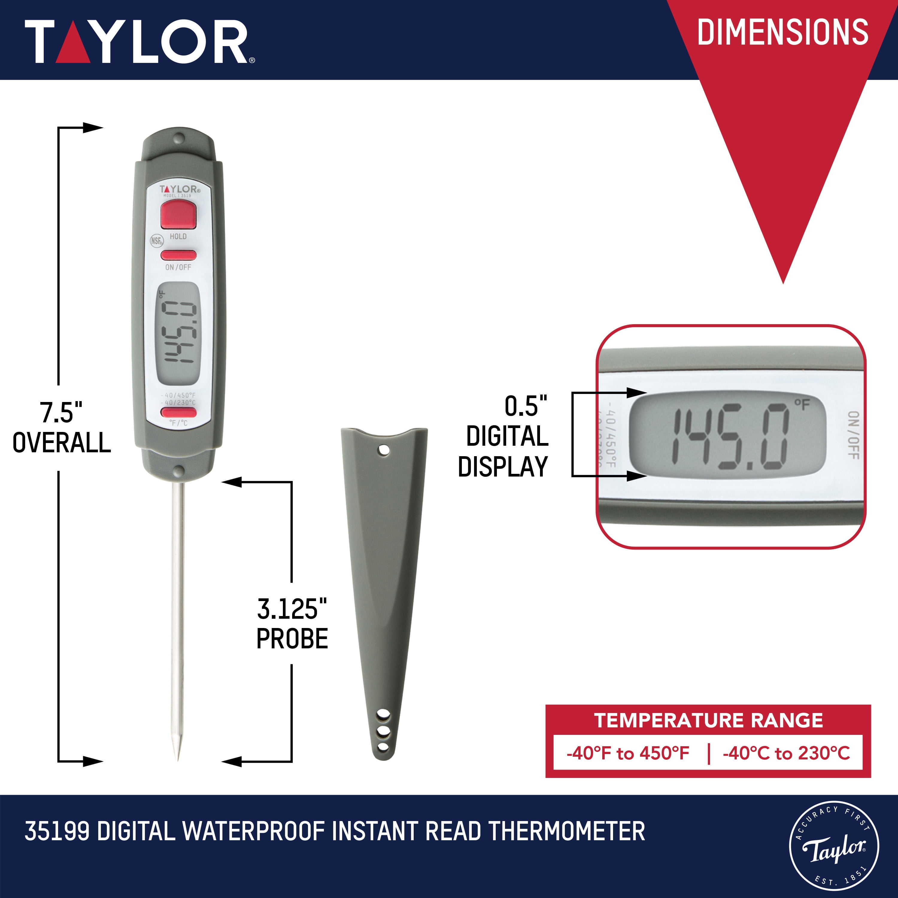 Taylor Compact Waterproof Digital Pen Meat Thermometer with Cover