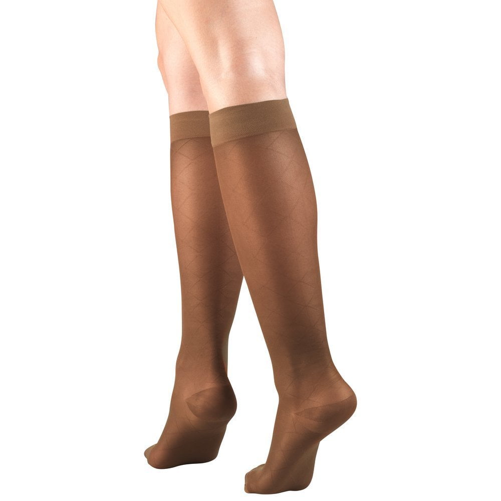 Truform Women’s Stockings, Knee High, Sheer, Diamond Pattern: 15-20 mmHg, Espresso, Large