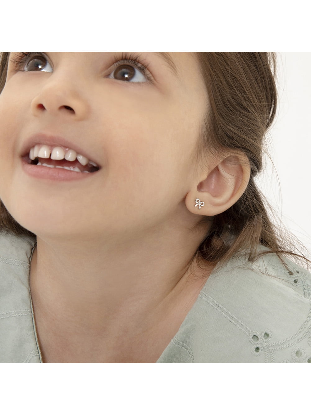 Delicate CZ Bow Baby / Toddler / Kids Earrings Screw Back – Sterling Silver