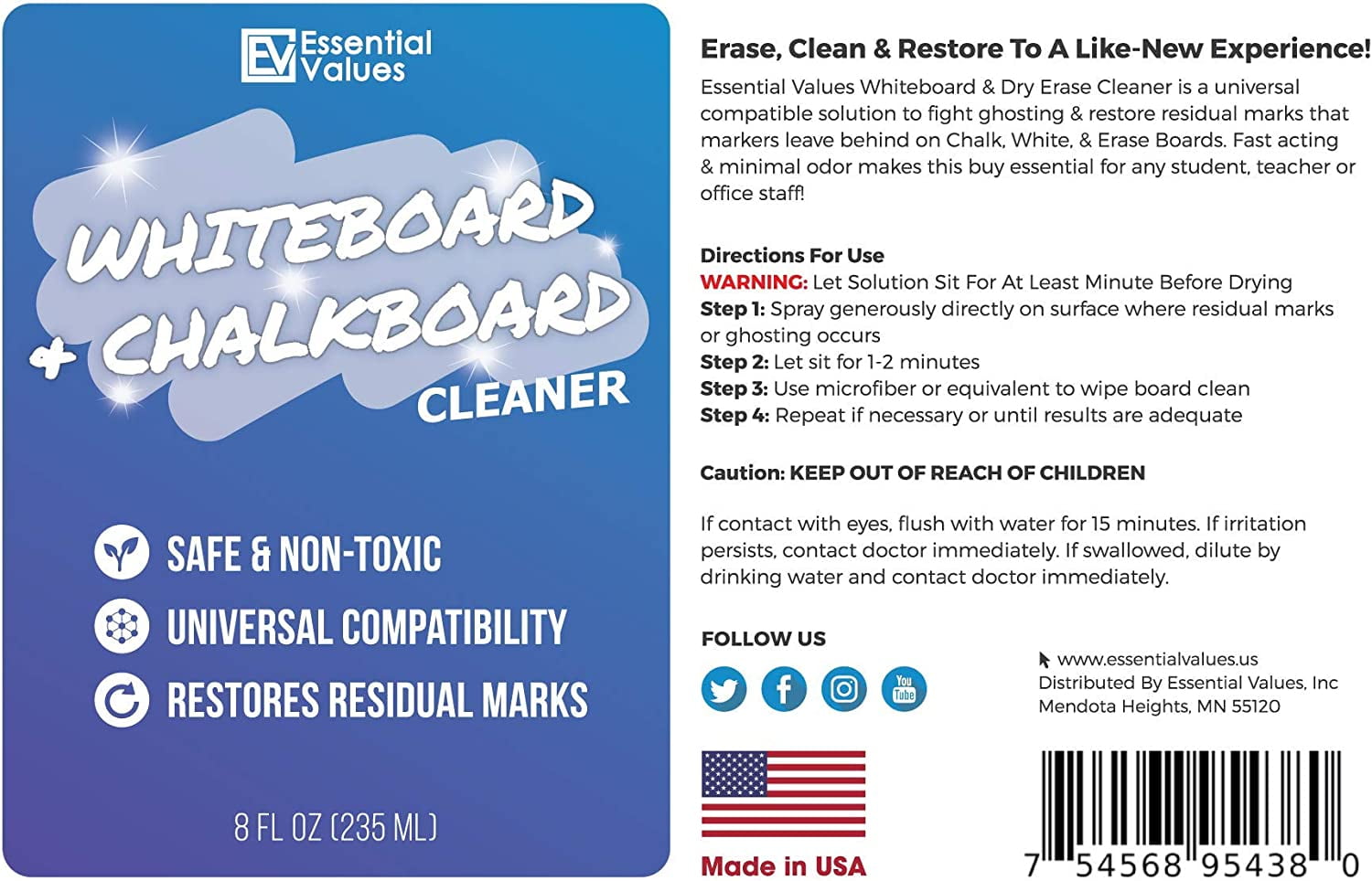Essential Values – Whiteboard Cleaner Spray (8oz Bottle)
