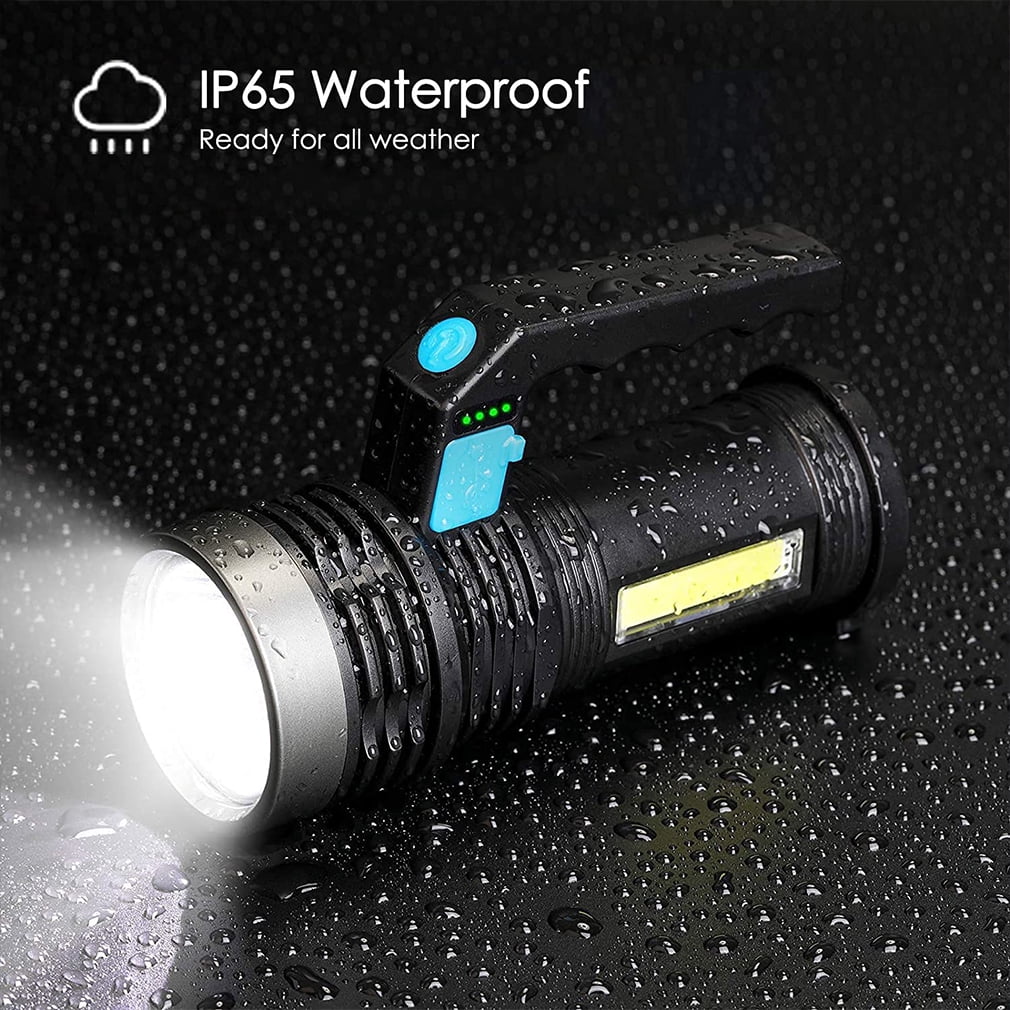 CZS Rechargeable Flashlights Handheld Led Flashlight Spotlight Flashlight,2000mAh High Lumen with 4 Modes,COB Side Searchlight (4 Pack)