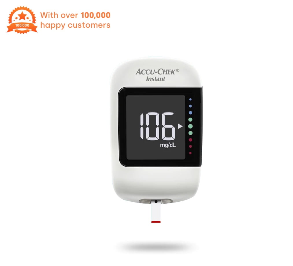 Accu-Chek Instant Blood Glucose Monitoring System with 10 Additional Test Strip Free enables you to keep a check on your blood glucose level easily and quickly. It takes less than five seconds to get the test results. Moreover, the results are clearly visible on the LCD display. The meter comes with a range indicator that makes it easy to understand how well you are doing. The data can thereafter be uploaded on the Accu Chek Connect Online portal. The product is ISO 15197:2013 approved and can completely be relied upon.* Proven Accuracy.