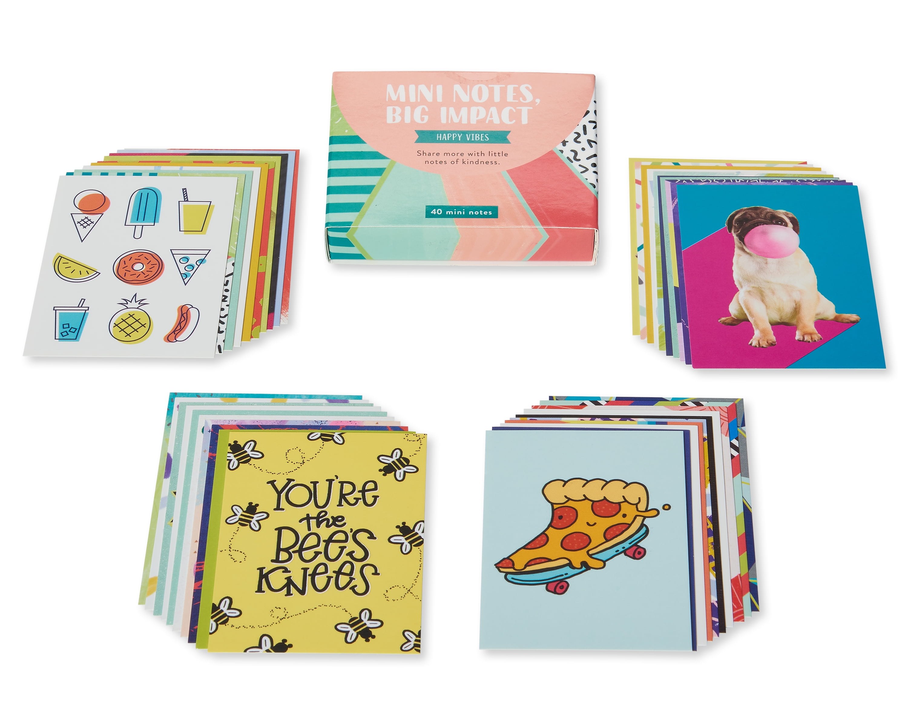 - Mini card packs feature fun motivation notes for kids, tweens and adults, like the Happy Vibes collection with neon-bright looks and upbeat messages.