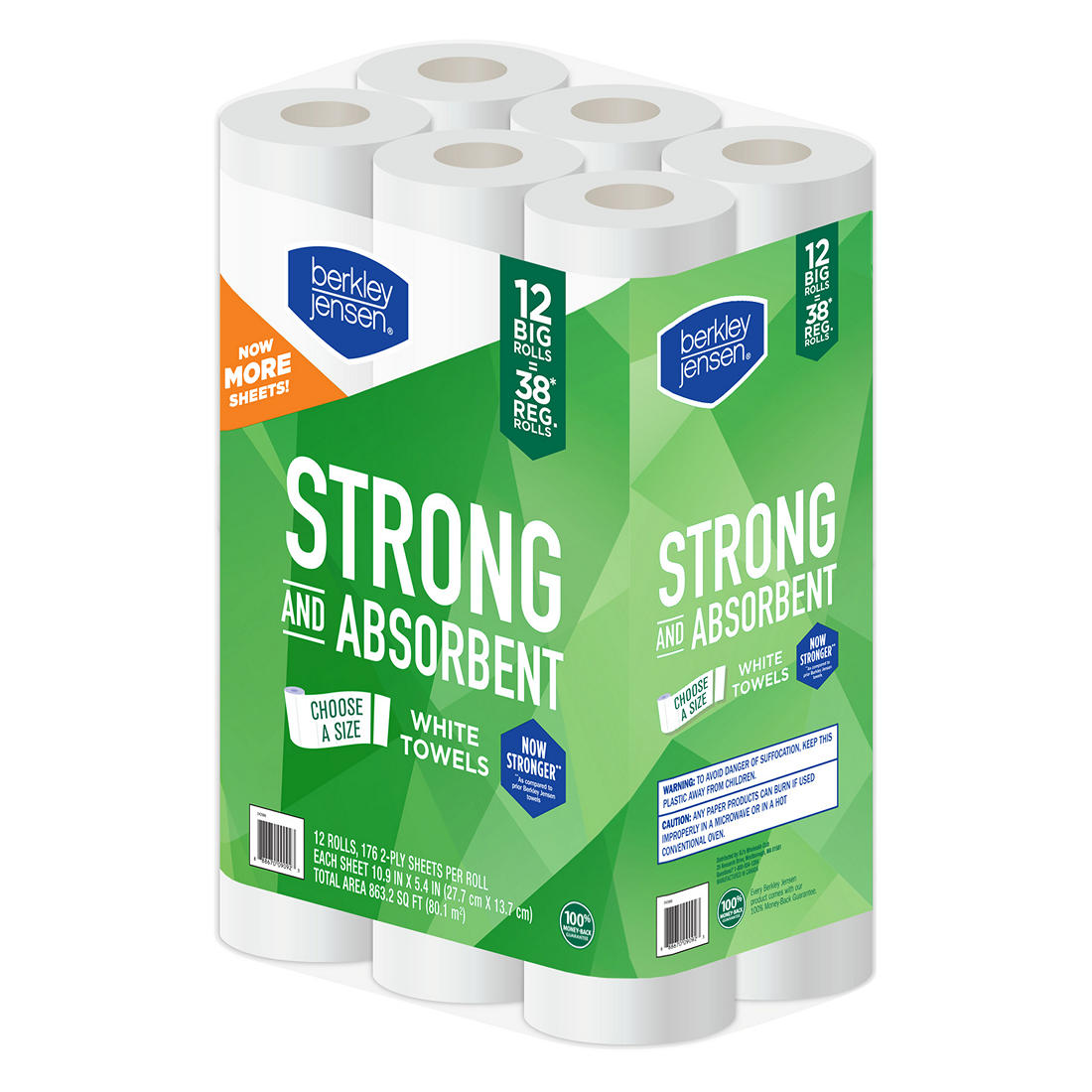 Berkley Jensen Select a Size Towel, 12 ct.. Berkley Jensen Select a Size Towel, 12 ct.Berkley Jensen Select a Size Towel, 12 ct.. There’s no spill to big for the Berkley Jensen select a size paper towels. Just get as much as you need big or small and rip away. Now more sheets 12 rolls = 38 regular rolls. Product Features: Strong and absorbent Choose a size 2-Ply (Model 19314)READ MOREThere’s no spill to big for the Berkley Jensen select a size paper towels. Just get as much as you need big or small and rip away. Now more sheets 12 rolls = 38 regular rolls.