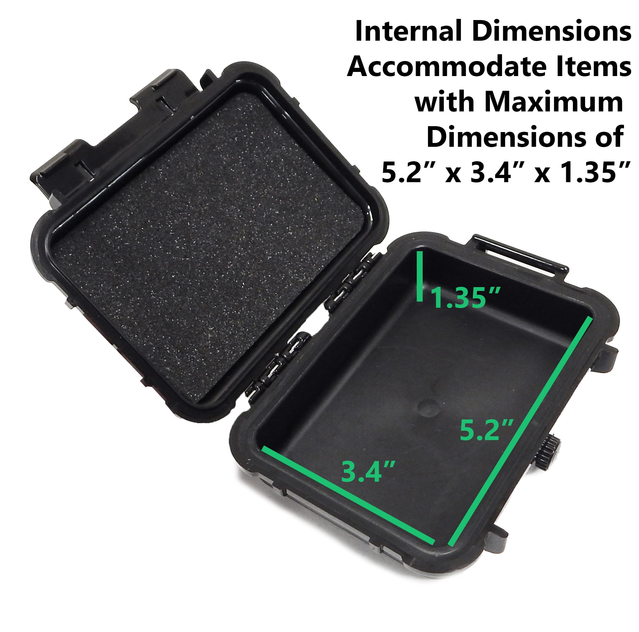 - Exterior is built with hard composite plastic and a pressure O-ring seal to make it Crushproof and Waterproof. Measuring 6.25 x 4.7 x 2.0 inches, it can be tossed into any bag, backpack or purse