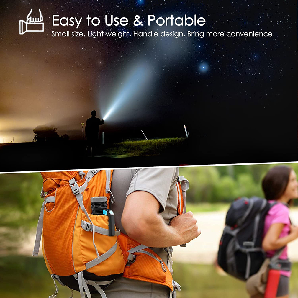 - 【camping flashlight waterproof&anti-skid】: The powerful flashlights is made of high-quality ABS material. spotlight flashlight has anti-skid, explosion-proof, and shockproof functions. Enhanced waterproofing can prevent it from splashing water from all angles. flashlights for camping Suitable for outdoor environment, bad weather conditions.