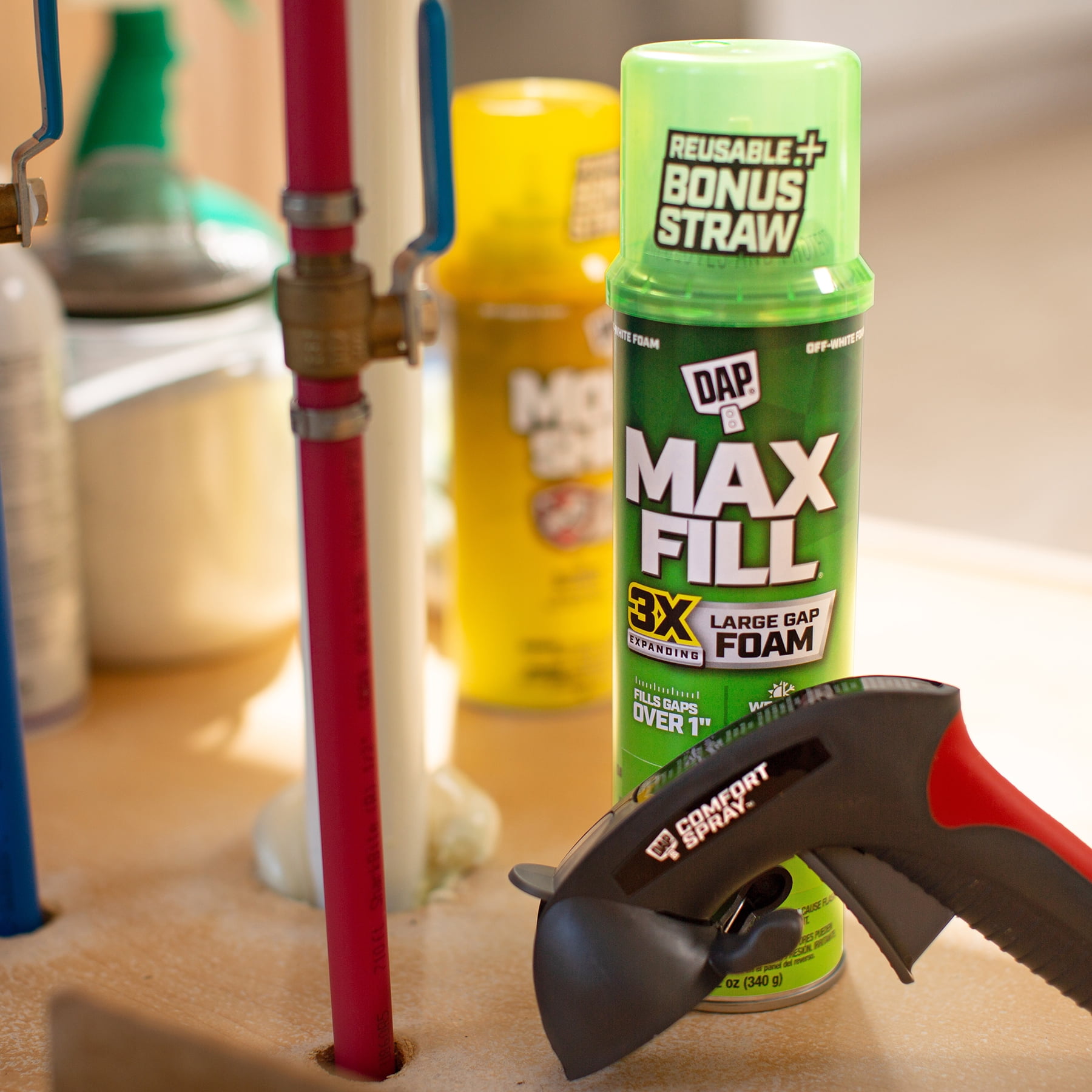 DAP Touch ‘n Foam Max Fill is the original Touch ‘n Foam sealant formulated to fill gaps and voids all around the home. Max Fill provides three times the expansion to fill gaps greater than 1 inch wide. Its weather-resistant bond seals out drafts while blocking insects and other pests. It can be used indoors or outdoors, is paintable, and comes with a reusable adapter, saving the can for multiple projects.