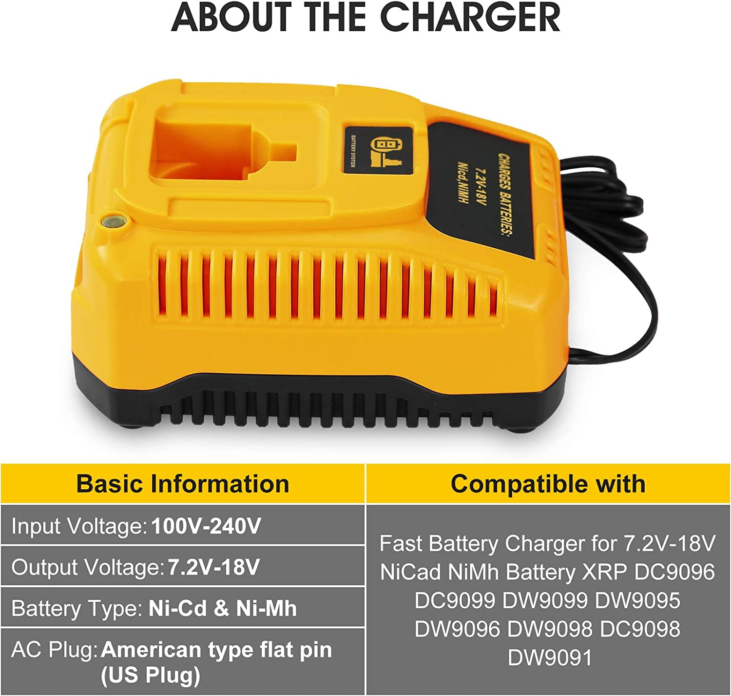 Replace for battery charger model DC9310: Compatible with Dewalt 7.2V-18V XRP NI-CD NI-MH Battery-DC9096 DC9098 DC9099 DC9091 DC9071 DE9057 DW9096 DW9094 DW9072.