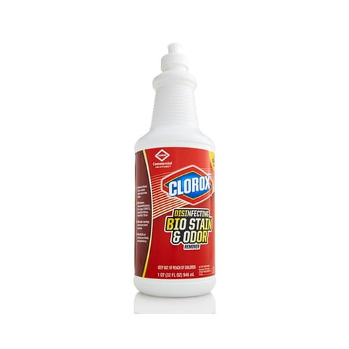 Clorox disinfecting bio stain & odor remover is perfect for disinfecting and removing the toughest odors and stains in one step. This bleach free stain and odor remover uses hydrogen peroxide technology to kill HIV, herpes, and flu virus in 30 seconds, kills hepatitis B and hepatitis C in 1 minute, and kills norovirus, E. coli, Salmonella and MRSA in 5 minutes. It also kills odor-causing bacteria on hard non-porous surfaces. It works great on stains from blood, feces, vomit, sweat, saliva, and urine. This versatile disinfectant can be used to clean many different hard and soft surfaces such as walls, tile, grout, concrete, carpet, fabrics, upholstery and more. Use this stain and odor remover on toilets, counter tops, mattresses, and even as a pre-treatment for laundry. With the SmartTube technology, you are guaranteed to spray every drop. Ideal for hotels, care centers, schools, offices, restaurants and other commercial facilities. Application: Hotels Offices Restaurants Restrooms Schools Applicable Material: Acrylic Carpet Ceramic Tile Chrome Curtains Fabric Floors Glass Granite Grout Hardwood Laminate Linoleum PVC Plastic Polycarbonate Polypropylene Porcelain Sinks Stainless Steel Tile Toilets Upholstery Vinyl Wood Chemical Compound: Hydrogen Peroxide Isopropyl alcohol Sodium Lauryl Sulfate Dirt Types: Blood Body Oils Urine Vomit.