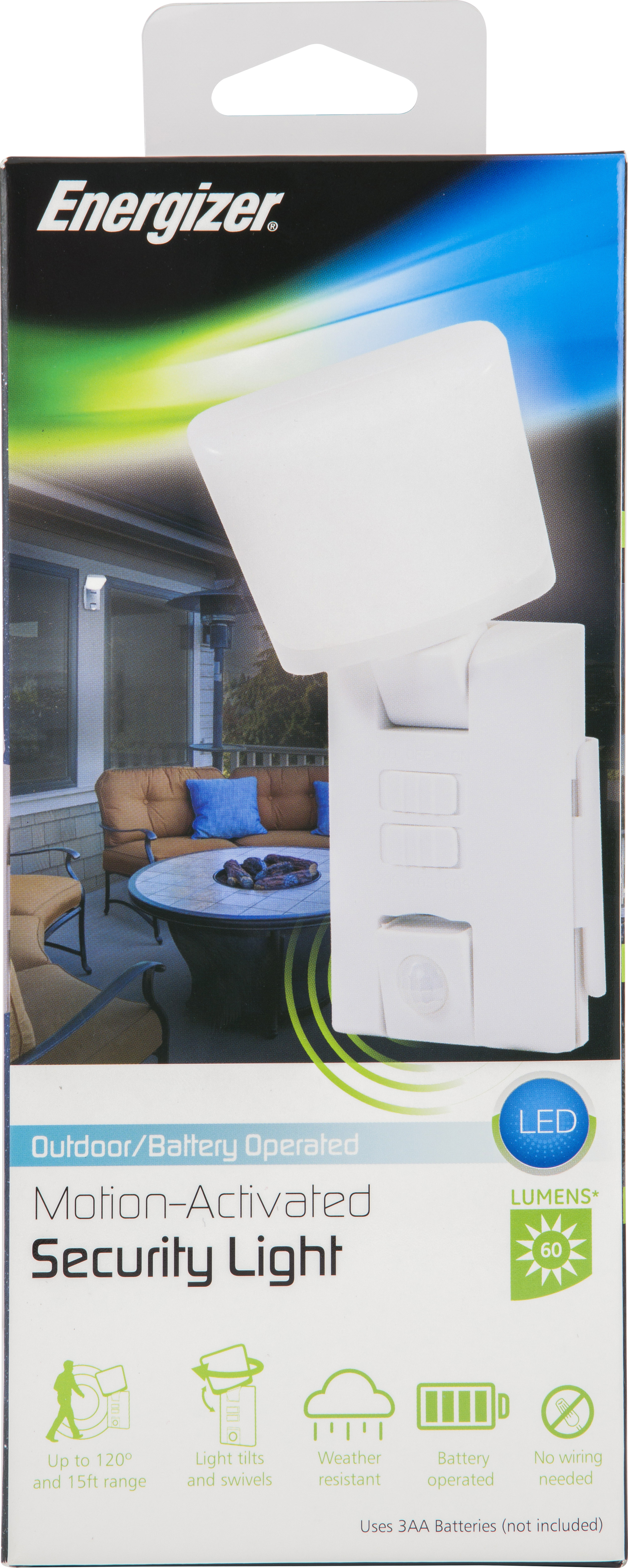Defeat the darkness with Energizer’s Motion-Activated Security Light. Besides its ability to detect movement, the light also features energy-efficient LED technology, enabling you to save on costs and maintenance while bolstering your peace of mind at home. The security light is a must for areas like entryways, driveways, sheds or anywhere you need additional light. But wherever you choose to put it, installation is easy thanks to the included mounting hardware. Just attach the mounting bracket to the surface of your choice and slide the light into the bracket. This high-quality battery powered security light requires 3 AA batteries and features a versatile swivel LED head design, and an adjustable motion sensor to provide light where you need it most. The light can be turned off and on manually or switched to auto mode for motion sensing in low-light settings. For simple, secure and cost-effective lighting, your best choice is the Energizer Motion-Activated Security Light.