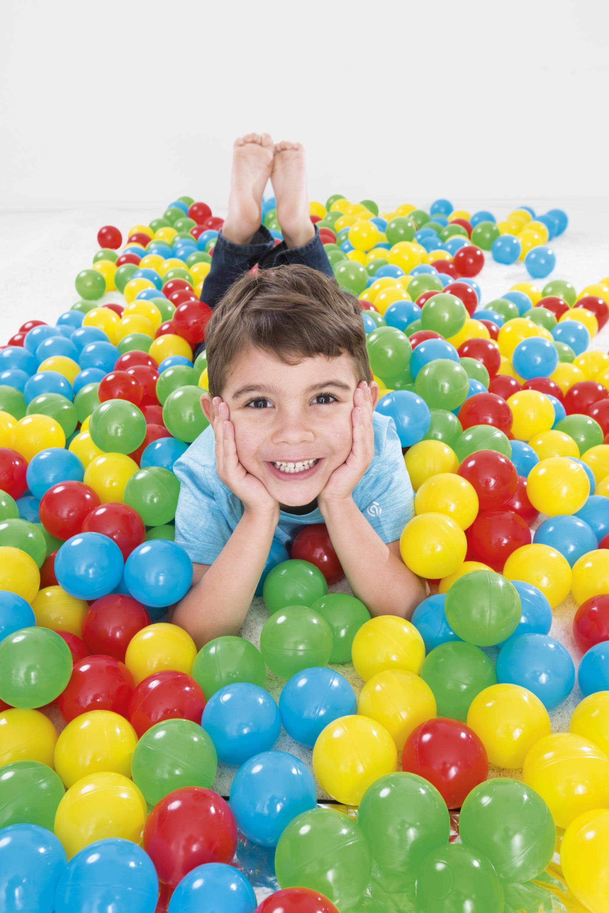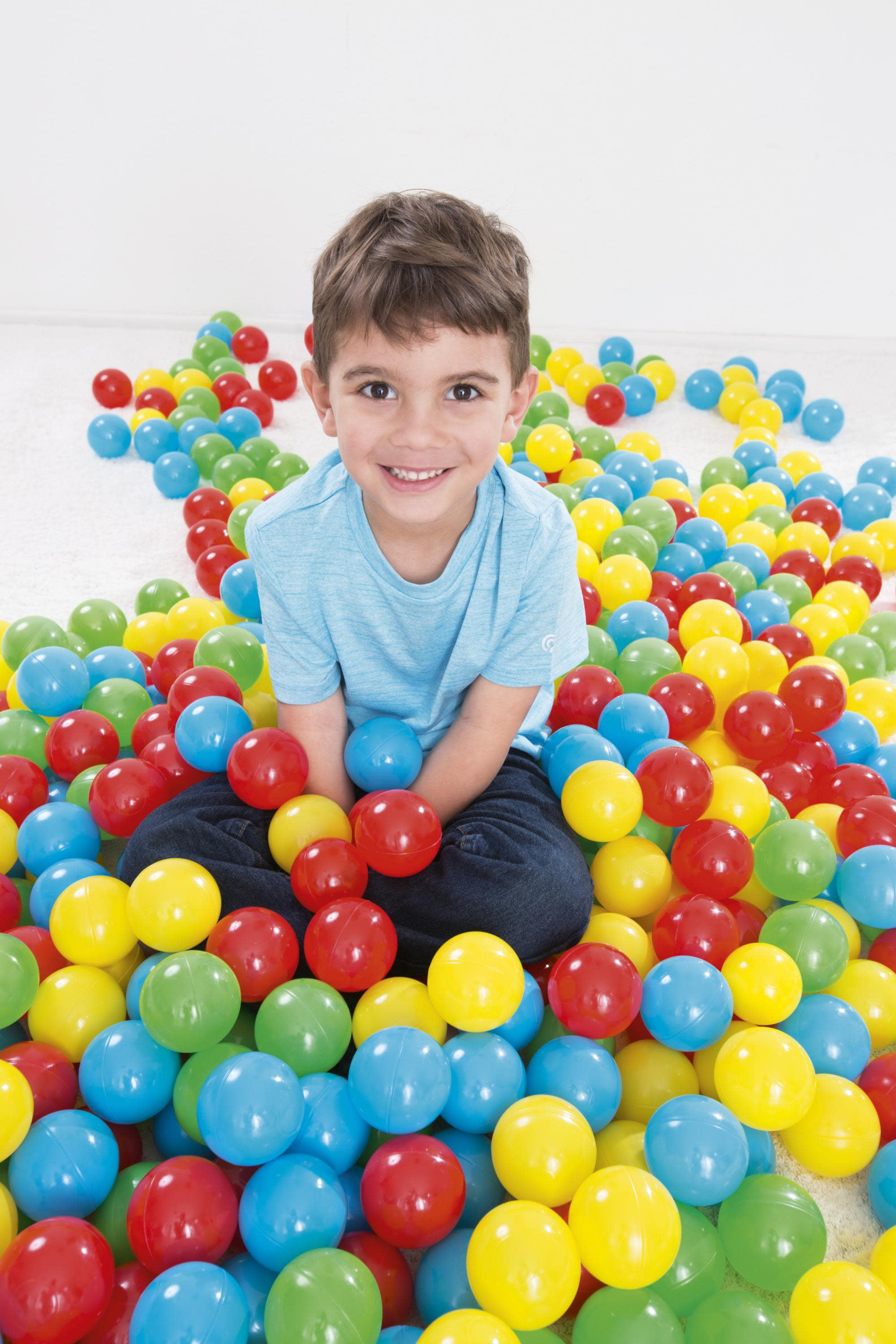 The Fisher-Price® 250 Play Balls set comes in 4 brightly assorted colors for a fun learning and playing experience! Great on their own, the Play Balls are also a terrific addition to any Fisher-Price Ball Pit. They are a fun way for little ones to learn to catch and throw, improving hand-eye coordination and other motor skills as they crawl, walk or run after the Play Balls. Made with air filled heavy-duty material and finished with a smooth seam, the Play Balls are lightweight and portable in addition to being a fun way for kids to learn colors!