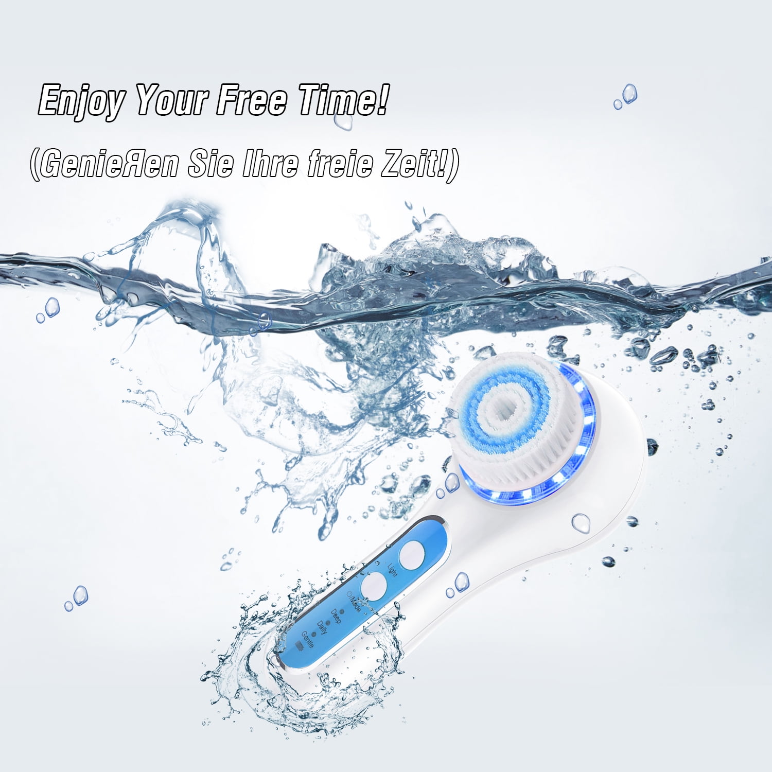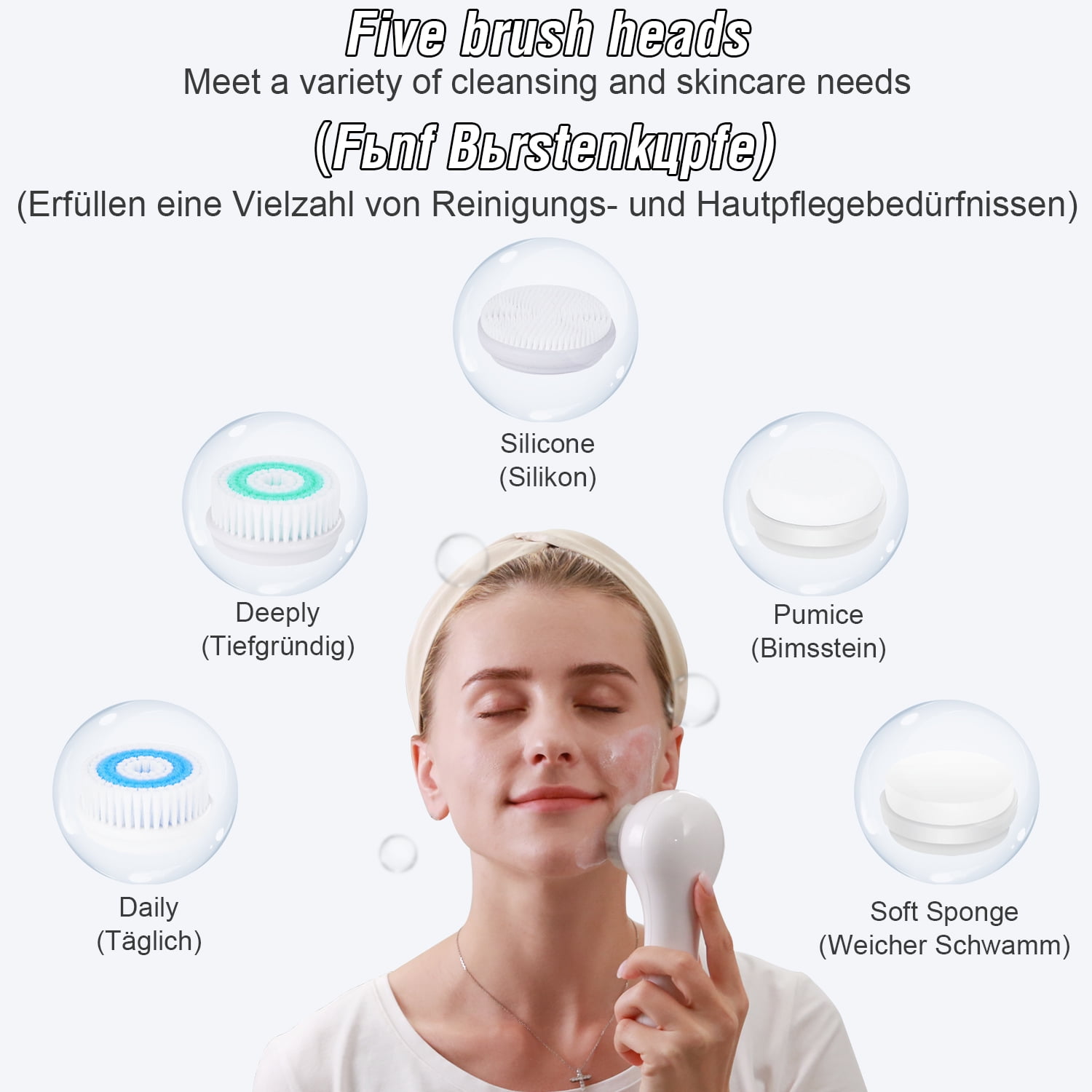 FreeBreath Facial Cleansing Brush, IPX7 Waterproof Face Scrubber with 3 Speed Modes, Face Brushes for Cleansing and Exfoliating with 5 Brush Heads, Removing Blackhead, Fully Rechargeable