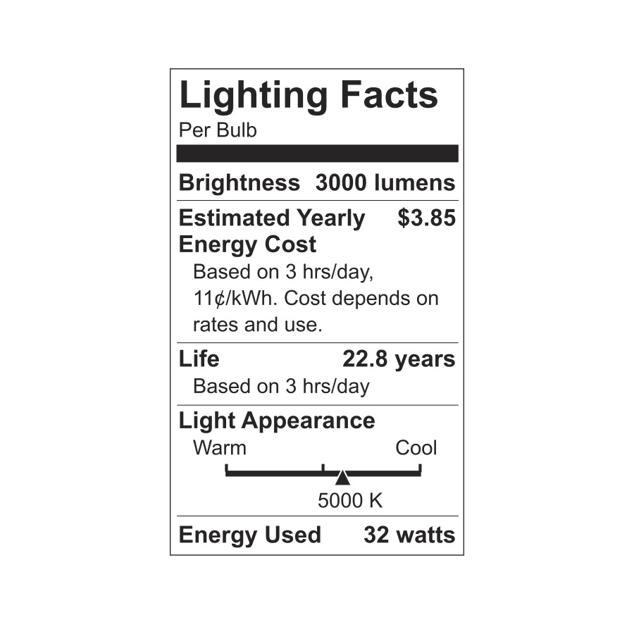- 250 Watt replacement using only 32 Watts (3000 lumens)