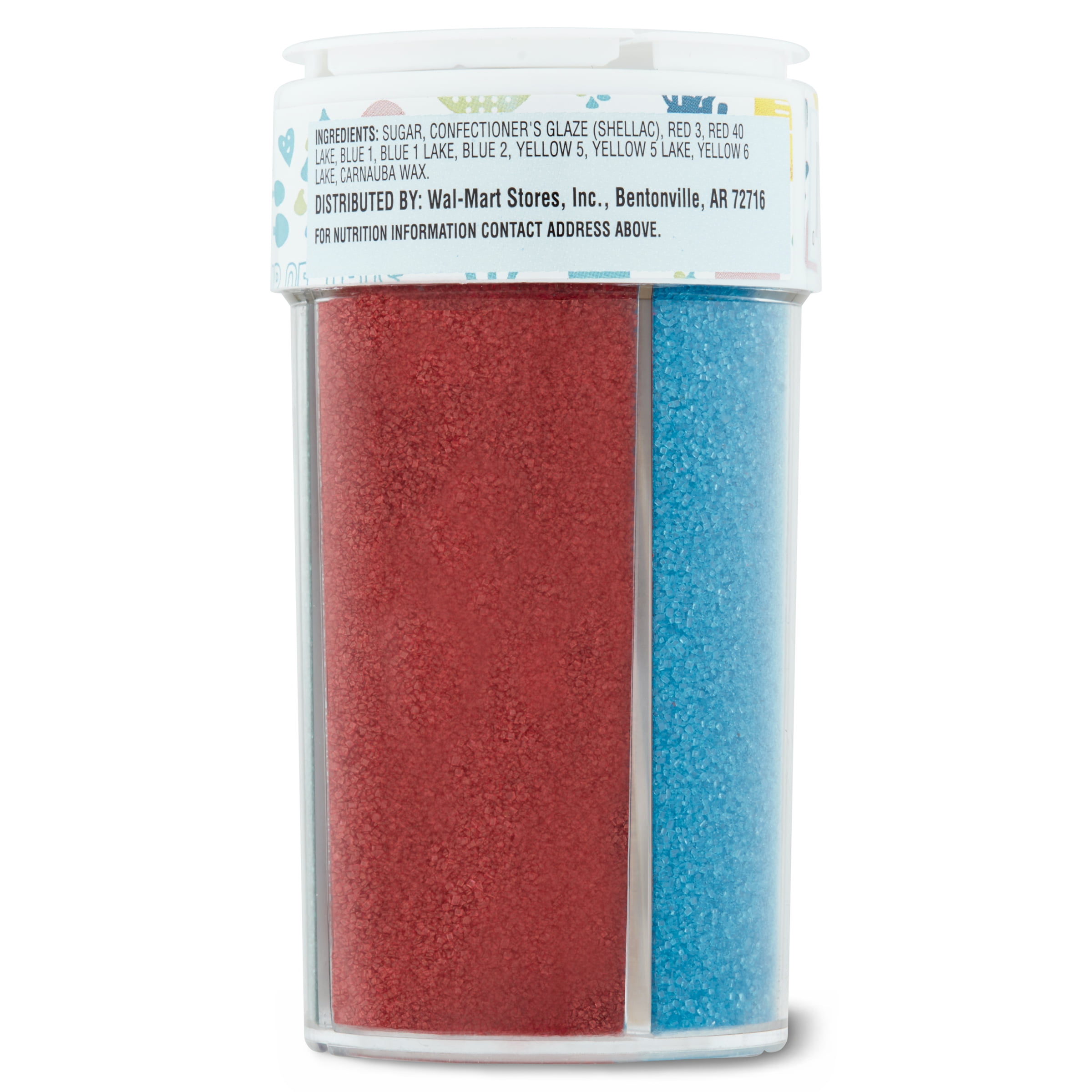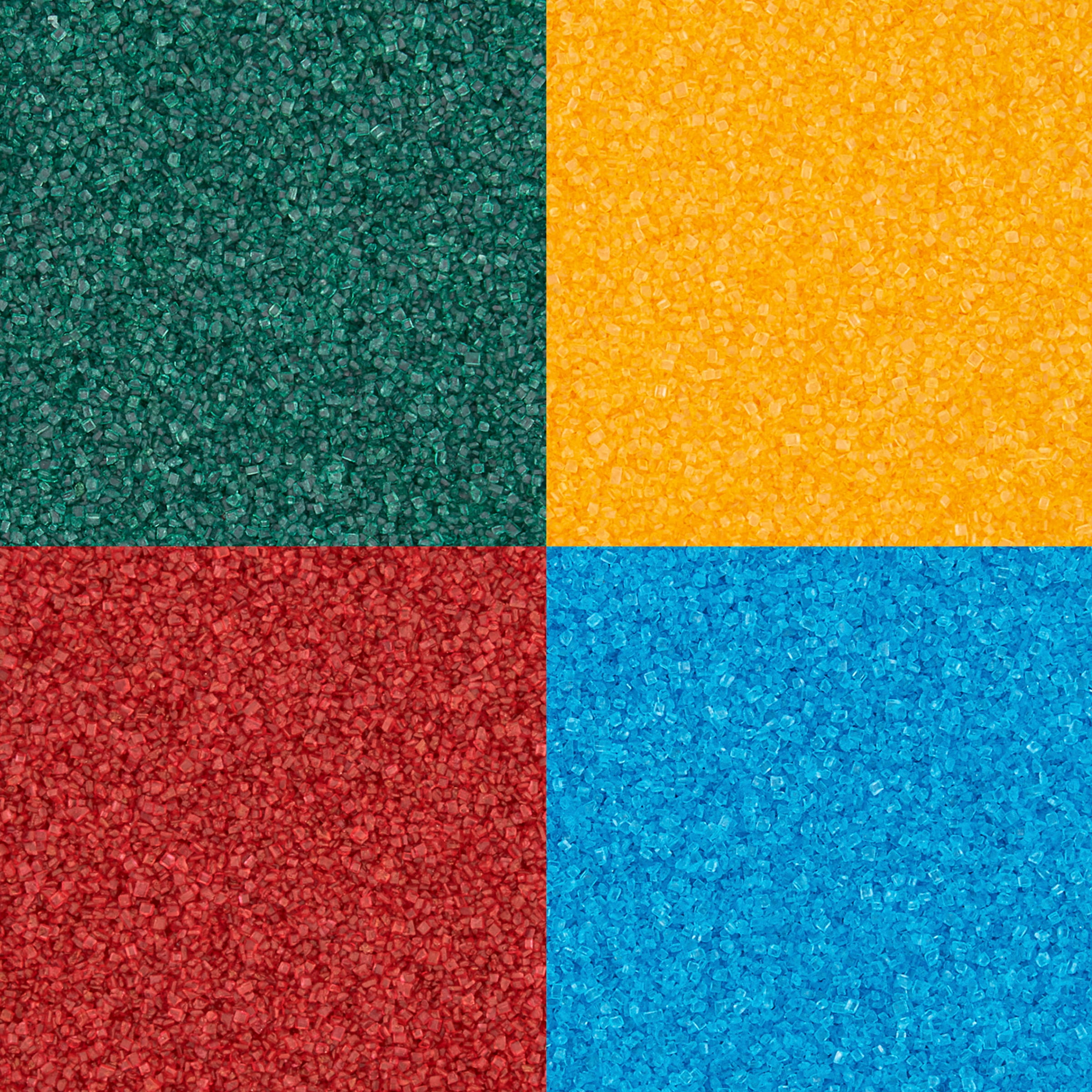 - Includes red, blue, green, and yellow sugars