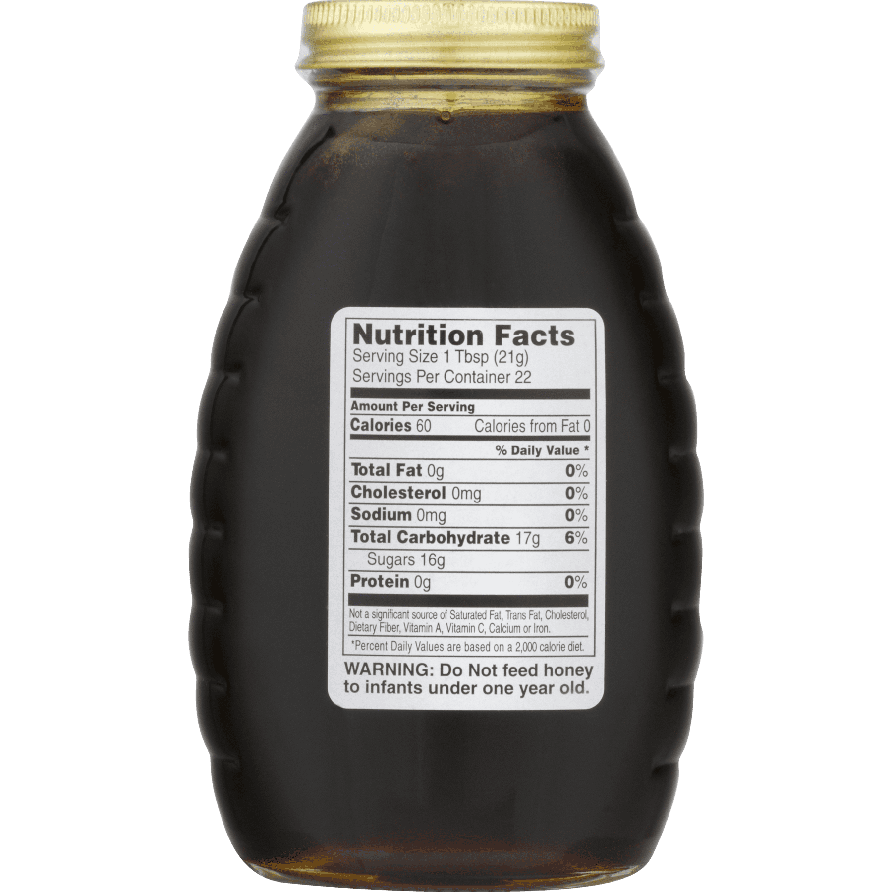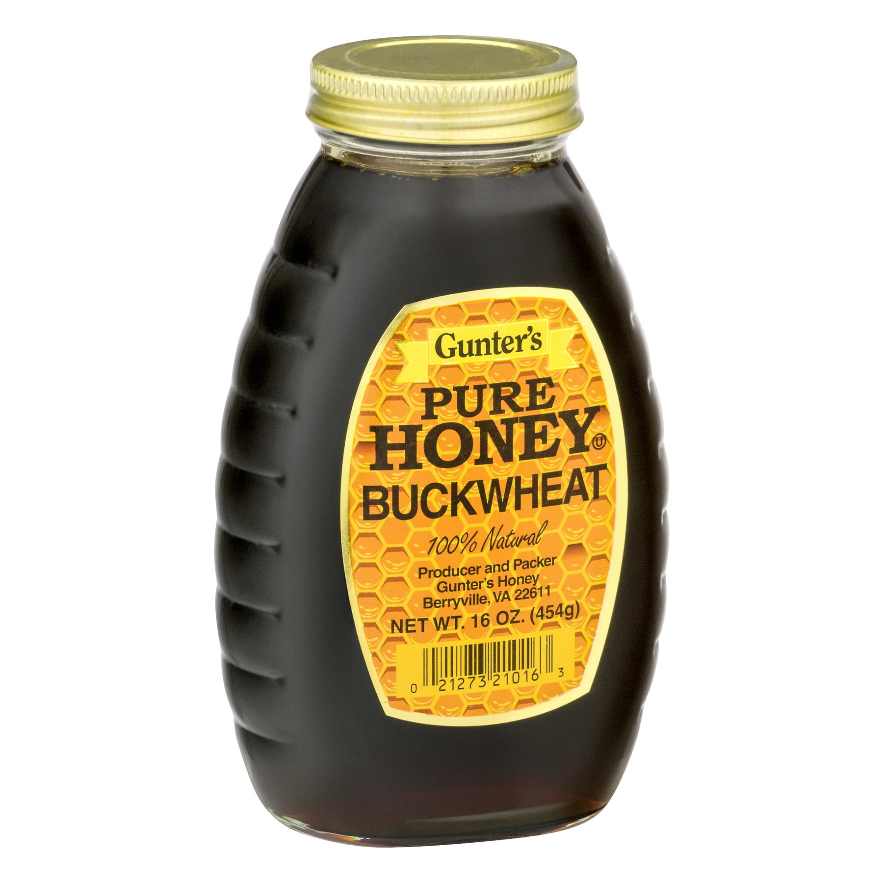 Honey, Pure Buckwheat, Jar 16 OZ 100% natural. Do not feed honey to infants under one year old. 16 oz (454 g) Berryville, VA 22611Gluten Free