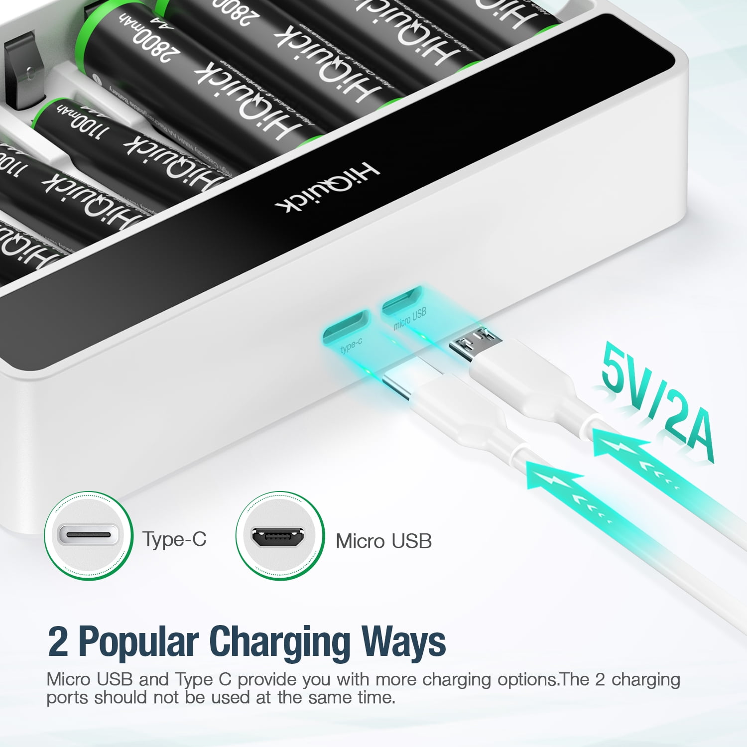 Specification:Battery Type: Ni-MHSize: AAAVoltage: 1.2VCapacity: 1100mAhRecycle: 1200 timesInput: Micro USB/Type-C DC5V/2A MinOutput:AA: DC 1.2V 1800mAAAA: DC 1.2V 900mAFull-load Power: 10WBattery Charging Rate: ≥80%Charging Way: Constant voltage and current control