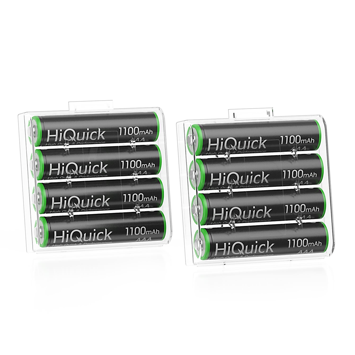 HiQuick 8 packs 1.2V AAA 1100mAh Ni-MH rechargeable batteries. HiQuick AAA batteries, can be recharged for 1200 times when fully or partially drained, save money and protect environment. Low self discharge, HiQuick AAA batteries maintain 80% of capacity after 36 months of non-use. HiQuick AAA batteries can be used anywhere and can replace conventional batteries in all devices, ideal for digital cameras, toys, remote controls, hand held games, 2-way radios, flashlights, toothbrushes, shavers and portable audio players etc.