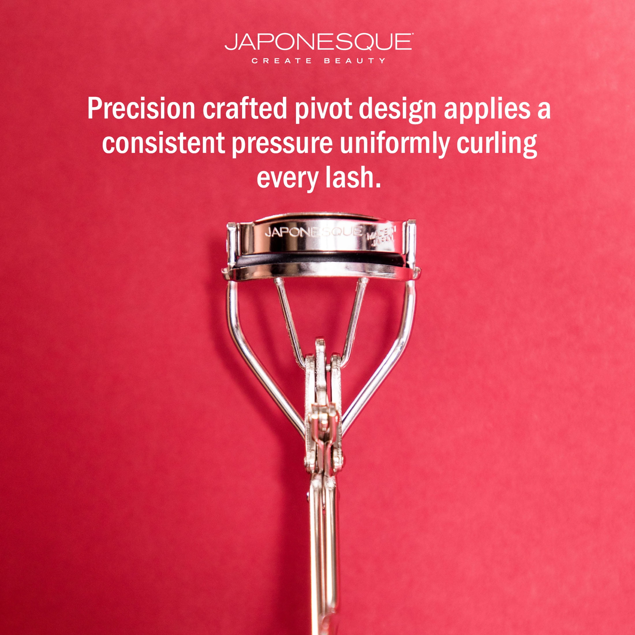 The Japonesque® Lash Curler in our Gunmetal finish delivers up to 8 hours of curl. The high arch creates a deep sweeping curl for dramatic eye-opening results. The deeper curve is ideal for round-shaped eyes. The precision-crafted pivot design applies consistent pressure uniformly curling your lashes. The soft lash pad creates a long- lasting curl and is gentle enough for both natural & false lashes.