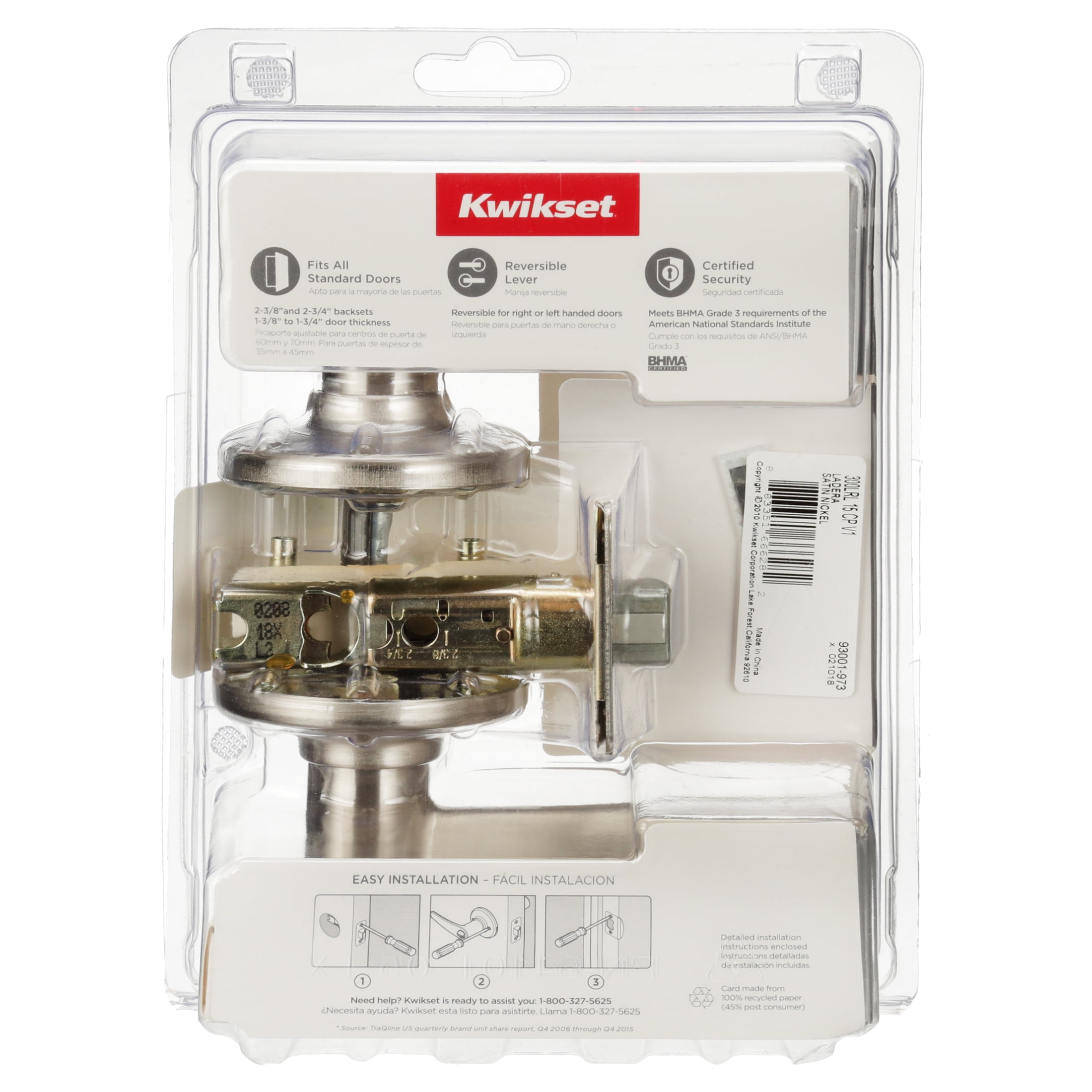 •SmartKey Security™ re-key technology is compatible with Kwikset (KW1) keyway or (SC1) keyway options