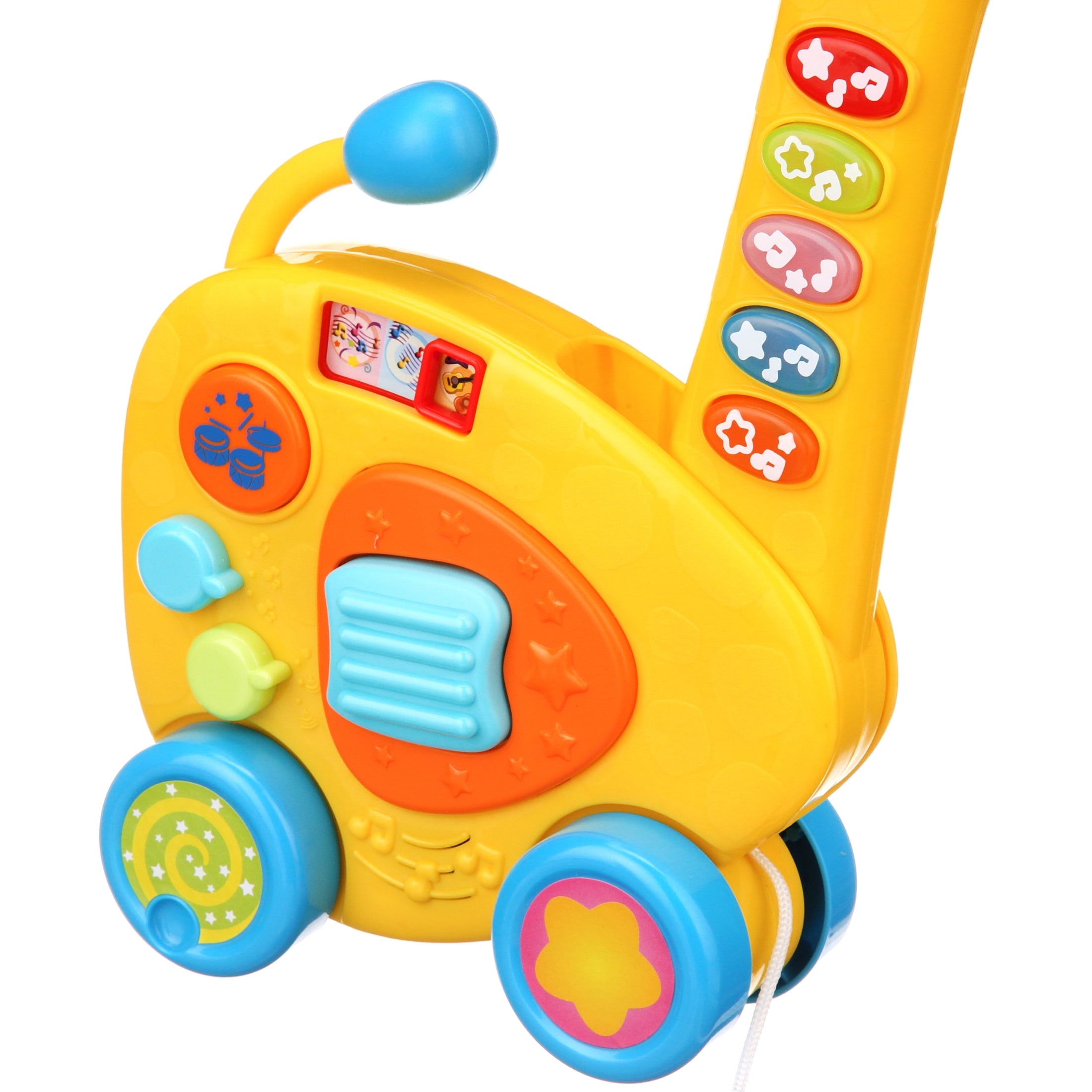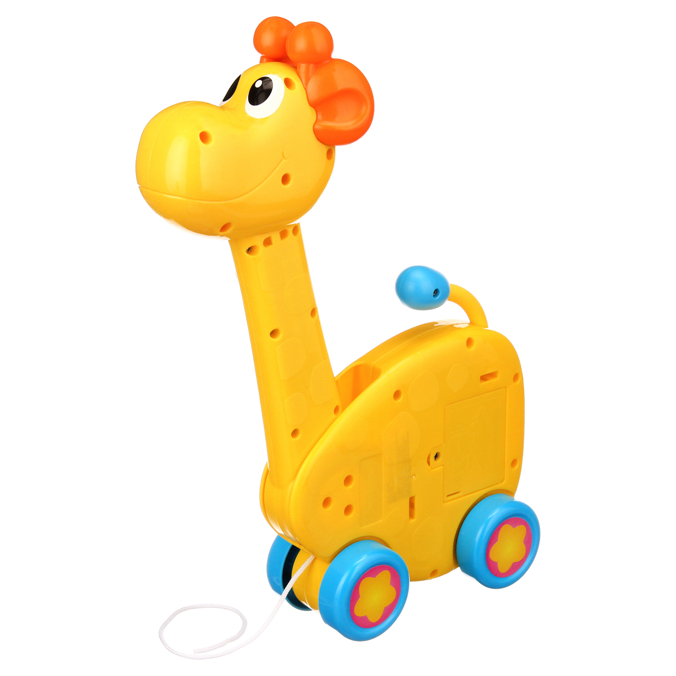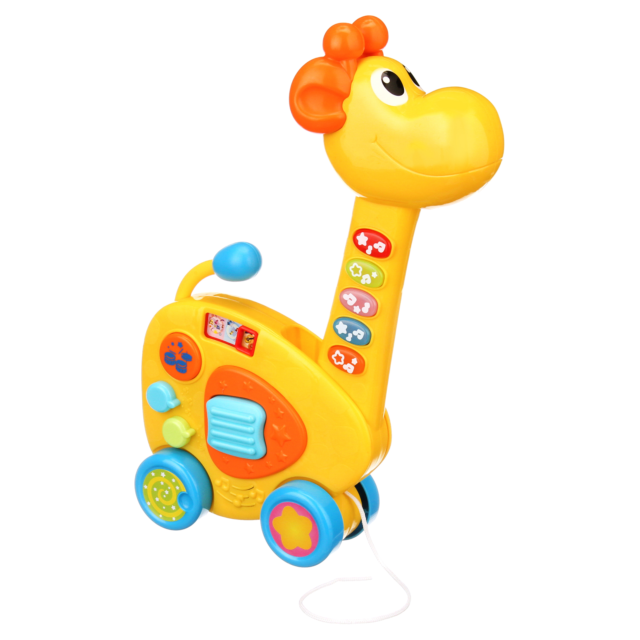 • Easily transforms from guitar to pull along giraffe pal • 5 chunky light up keys • Giraffe tail whammy bar and strum button • Pull along the giraffe for more fun • Ages 18 months and up