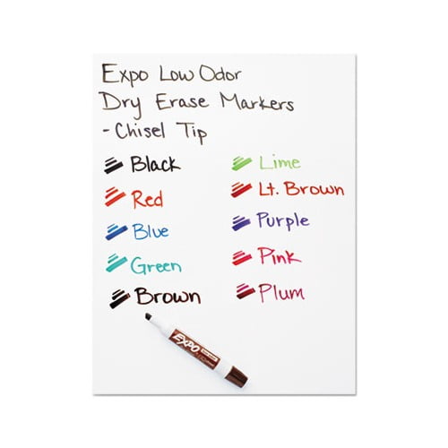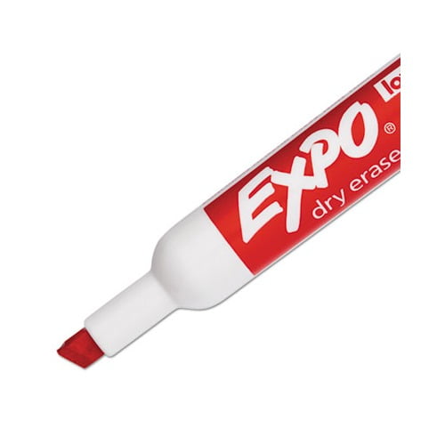 Markers feature bold ink that’s easy to see from a distance and provide consistent color quality. These Expo dry erase markers erase cleanly and easily from whiteboards and other non-porous surfaces with a dry cloth or Expo eraser. The dry erase marker ink is specially formulated to be low-odor, making it perfect for use in classrooms, offices and homes. Use your Expo whiteboard markers to track, schedule and present. Marker Ink Type: Dry Erase Marker Tip Type: Chisel Marker Tip Size text: Broad Marker Colors: Red.