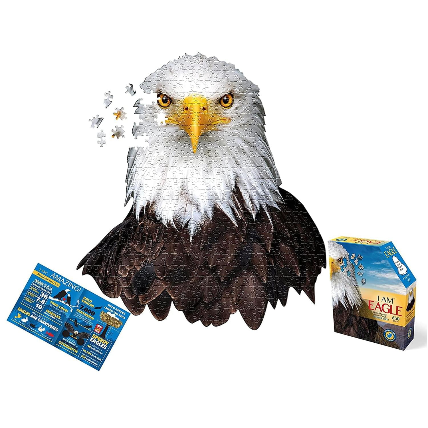 Madd Capp puzzles will challenge and inspire you, your family and friends. Each special jigsaw experience is a unique, poster sized, ANIMAL HEAD-SHAPED puzzle when fully assembled. Madd Capp Puzzles also contain colorful insert with fun facts and puzzle image reference. Our distinctive five sided box help display our product on a bookshelf in your home. The unique shaped puzzles are printed on premium quality white cardboard and the interlocking puzzle pieces are cut in a ribbon style pattern with large individual firm pieces. Fun for the entire family, these Madd Capp Puzzles are for ages 10 and up.