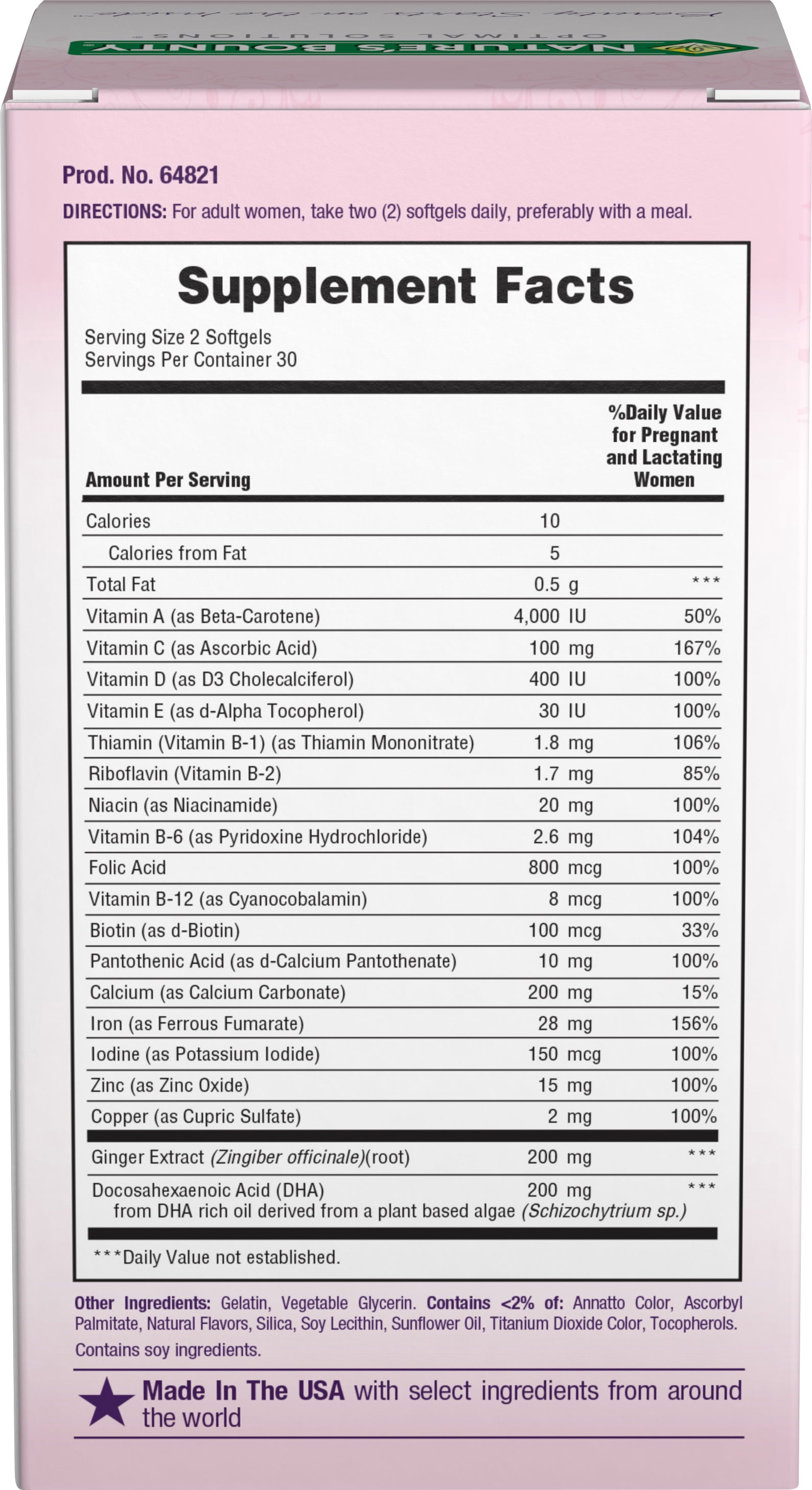 - Nature’s Bounty Optimal Solutions Prenatal Multivitamin Softgels, 60 Ct:
