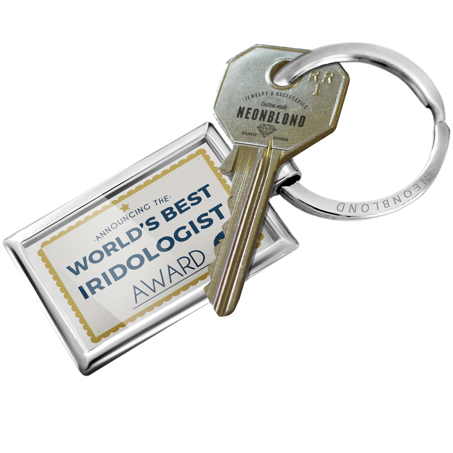 NEONBLOND’s key chains / key rings are a unique and perfect gift, ideal for house and car keys. You need a Black Friday Stocking stuffer or a Christmas Gift? We have more than 90,000 different keychain products all assembled the USA! Standard Size measures approximately 3" X 1", including key ring Money-back Satisfaction Guarantee Made in Atlanta ,GA.NEONBLOND Keychain Worlds Best Iridologist Certificate Award