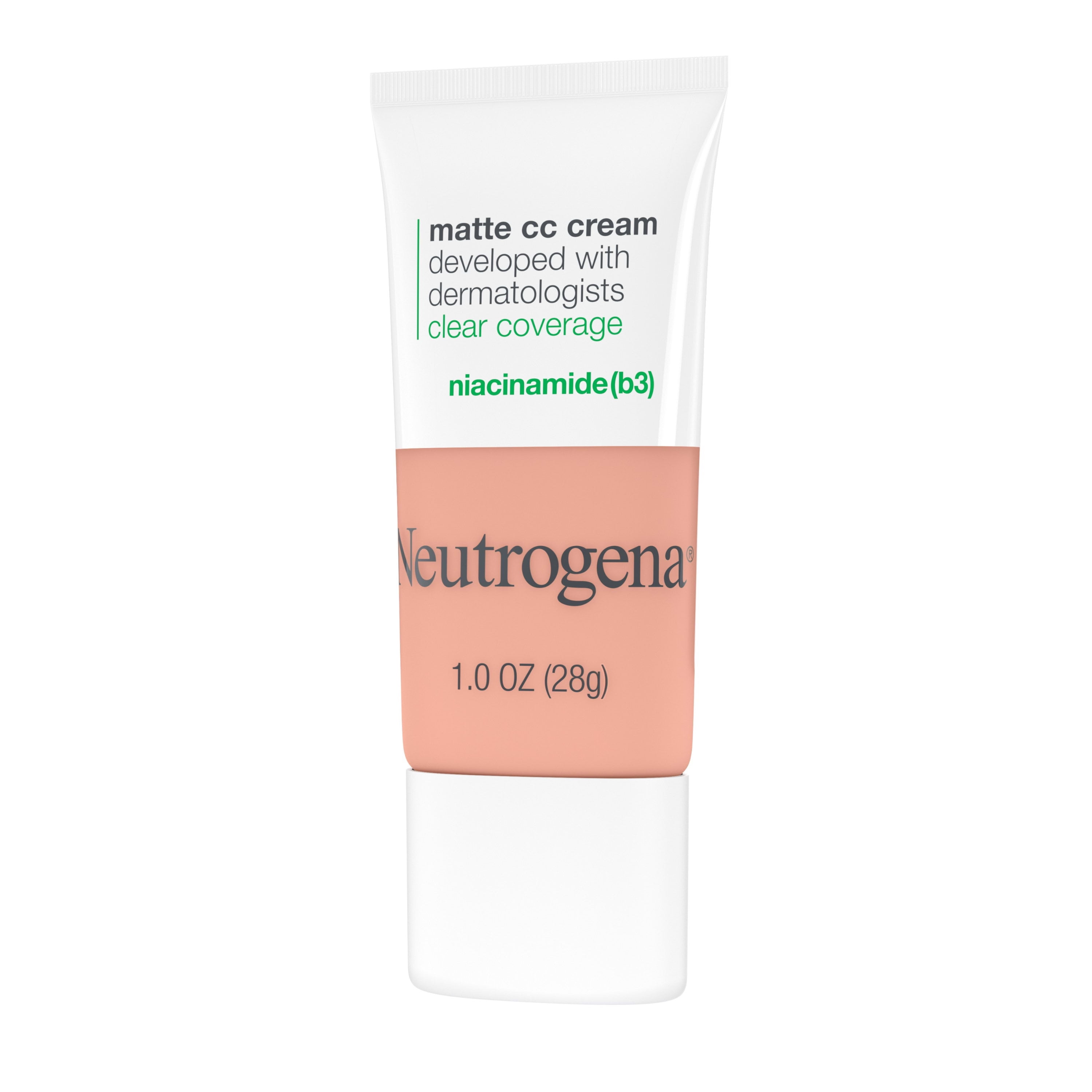 Get a flawless looking complexion with Neutrogena Clear Coverage Flawless Matte CC Cream. Available in 34 natural-looking shades, this color correcting cream makeup from a dermatologist recommended brand provides full, matte coverage, designed to mask imperfections and even skin tone. The mattifying foundation was developed with dermatologist for acne prone skin and is formulated with niacinamide (b3) and is hypoallergenic, free of oil, fragrance, parabens, and phthalates. This breathable formula feels comfortable on skin, blurs the look of discoloration and redness, and leaves skin feeling soft and smooth.