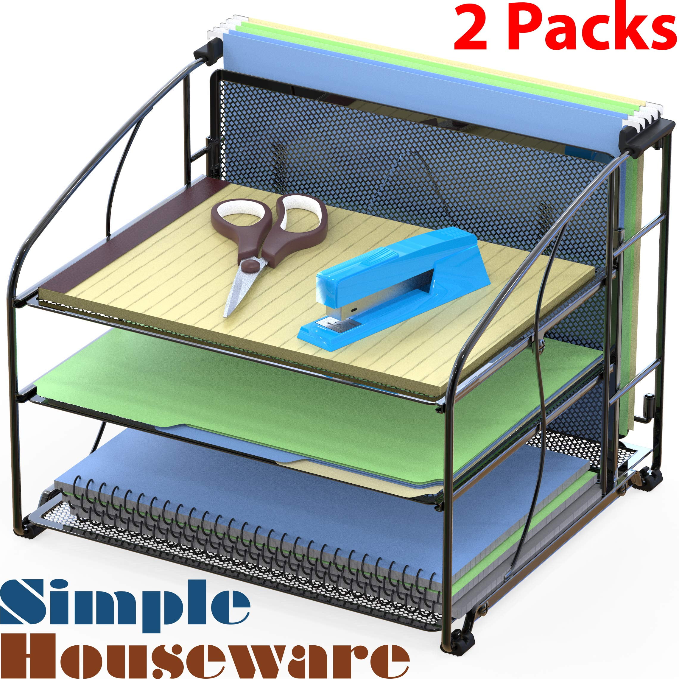 2 Pack – SimpleHouseware Desk Organizer 3 Tray w/Hanging File Holder, Black
