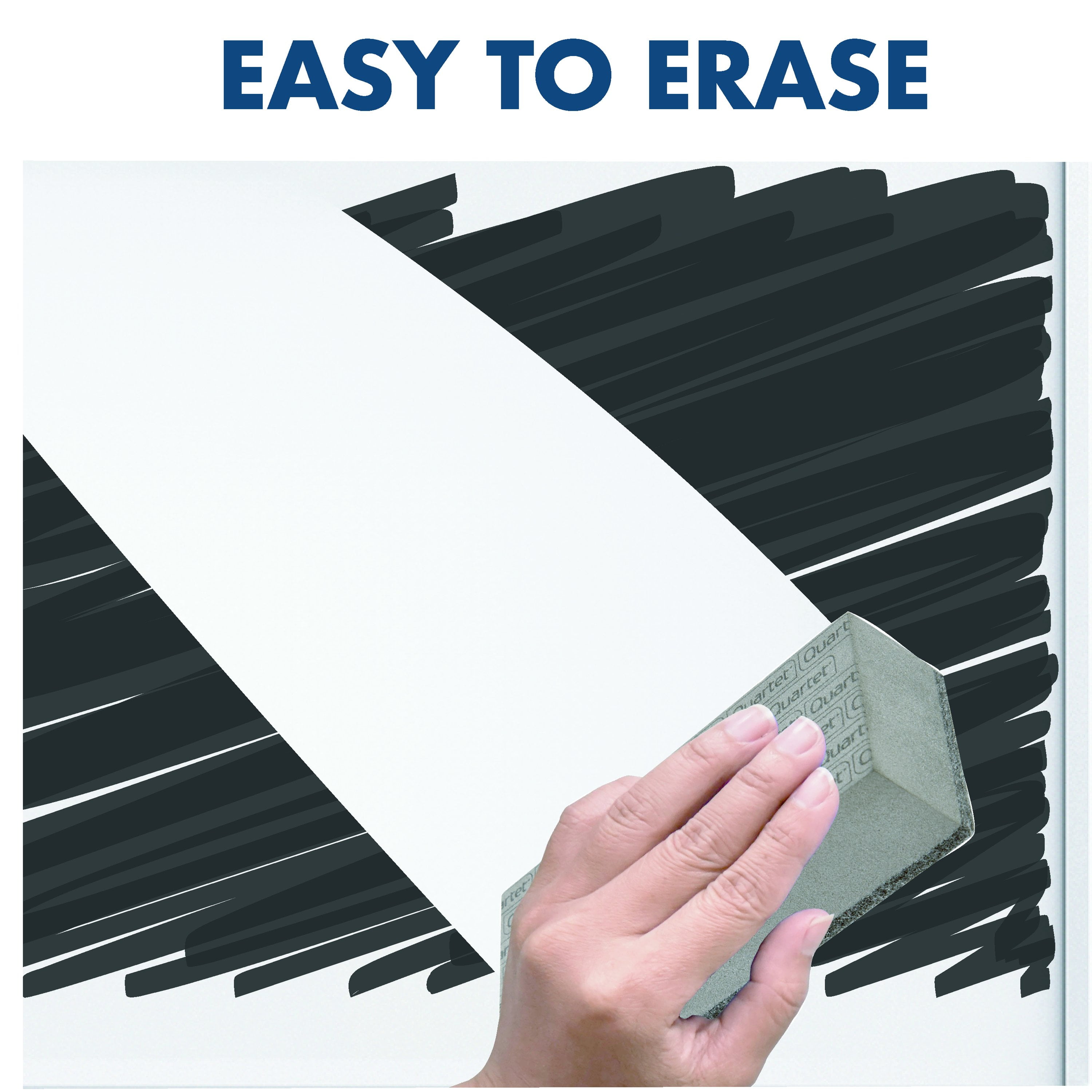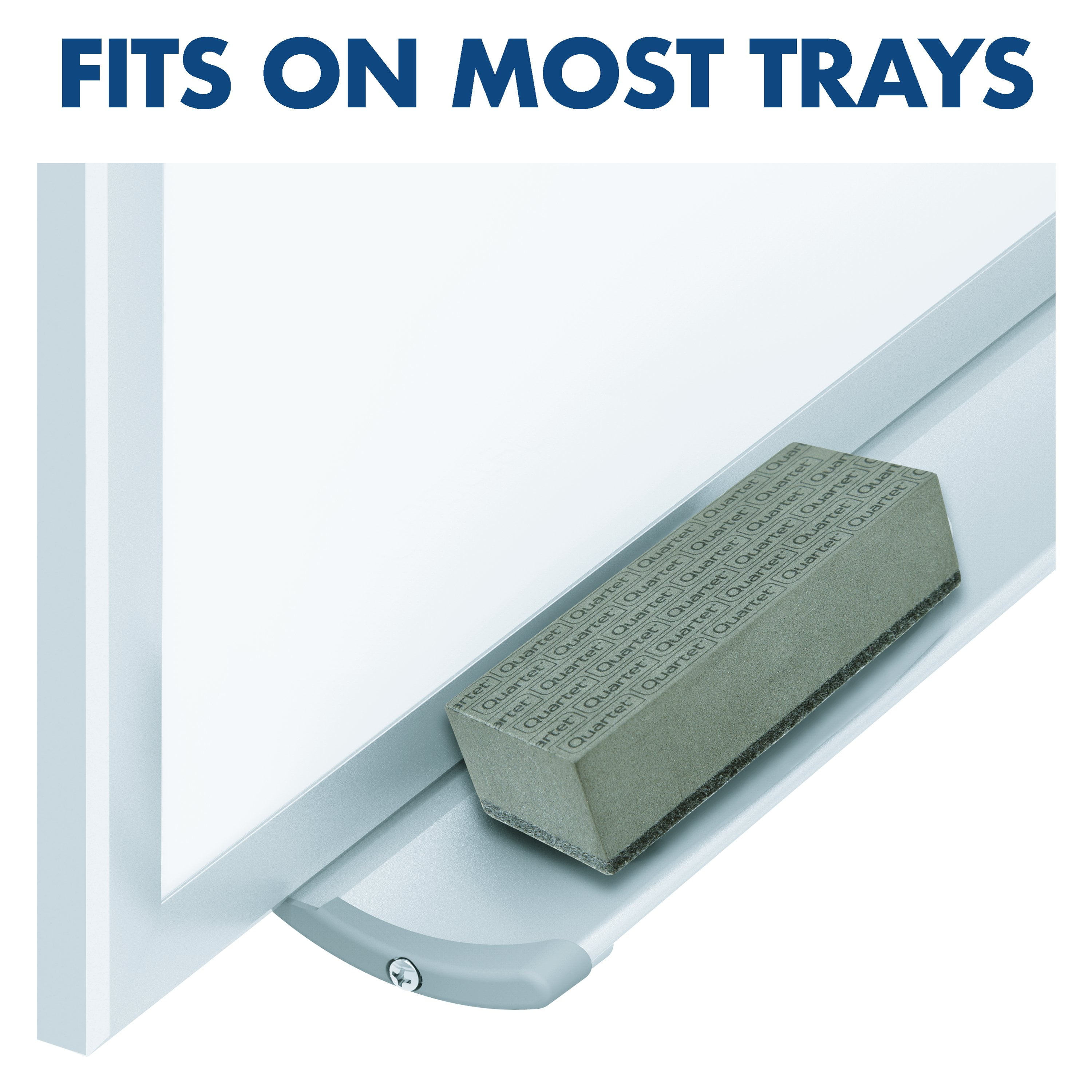 Quartet board eraser removes dry-erase marker ink and chalk dust for a clean writing surface. Its foam construction is soft, easy to grip and lightweight for comfortable erasing. The felt pad on the bottom of the eraser captures and removes chalk and dry-erase ink without damaging the board’s surface. This eraser can be used on any dry-erase board, chalkboard or combination board. Suitable for use with painted steel, melamine or glass dry-erase surfaces. Its simple construction and design are perfect for use in the office, at home or in school environments. 2" x 5" x 1 1/4" in size. Comes in gray.